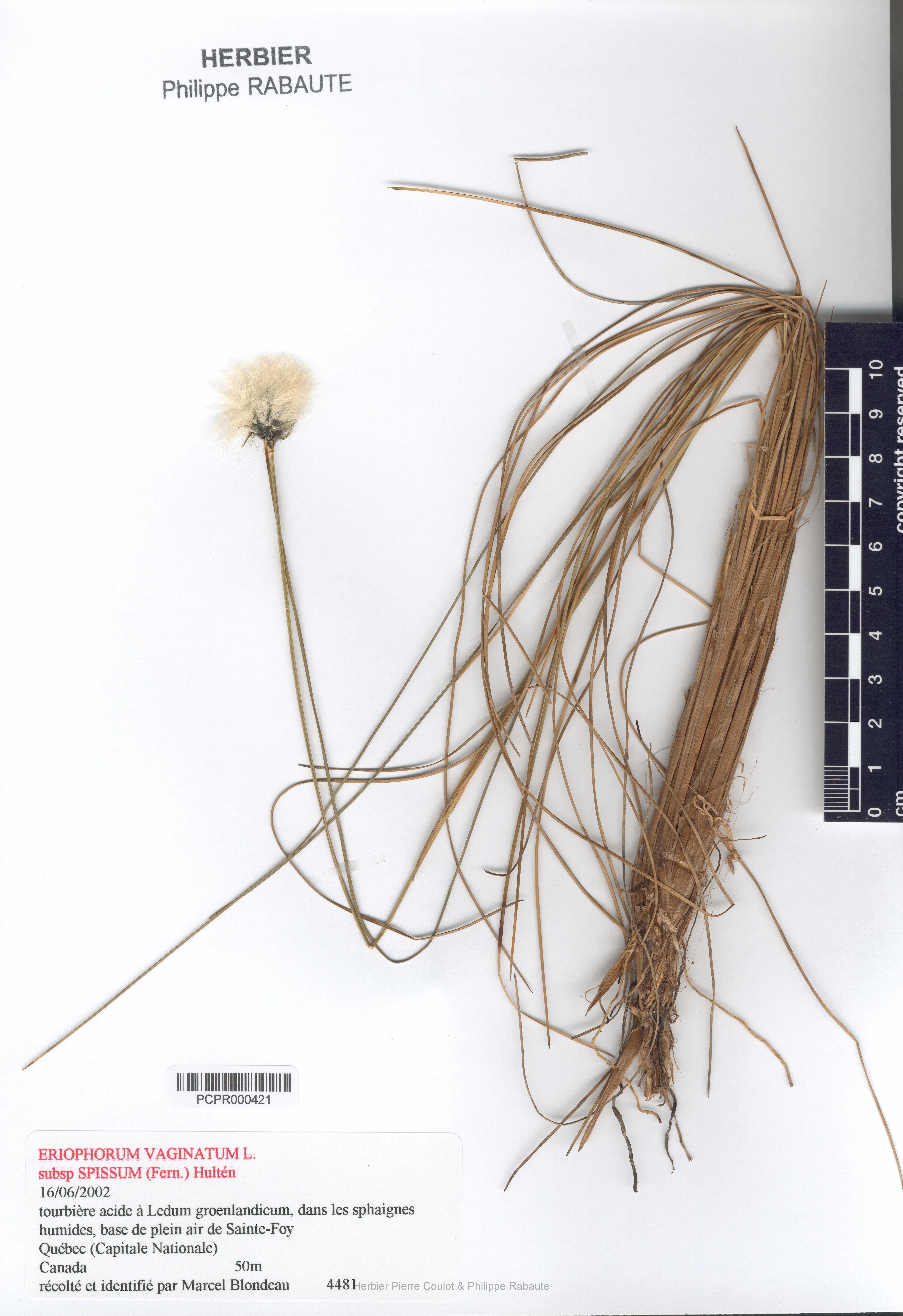 Eriophorum vaginatum L. subsp. spissum (Fernald) Hulten