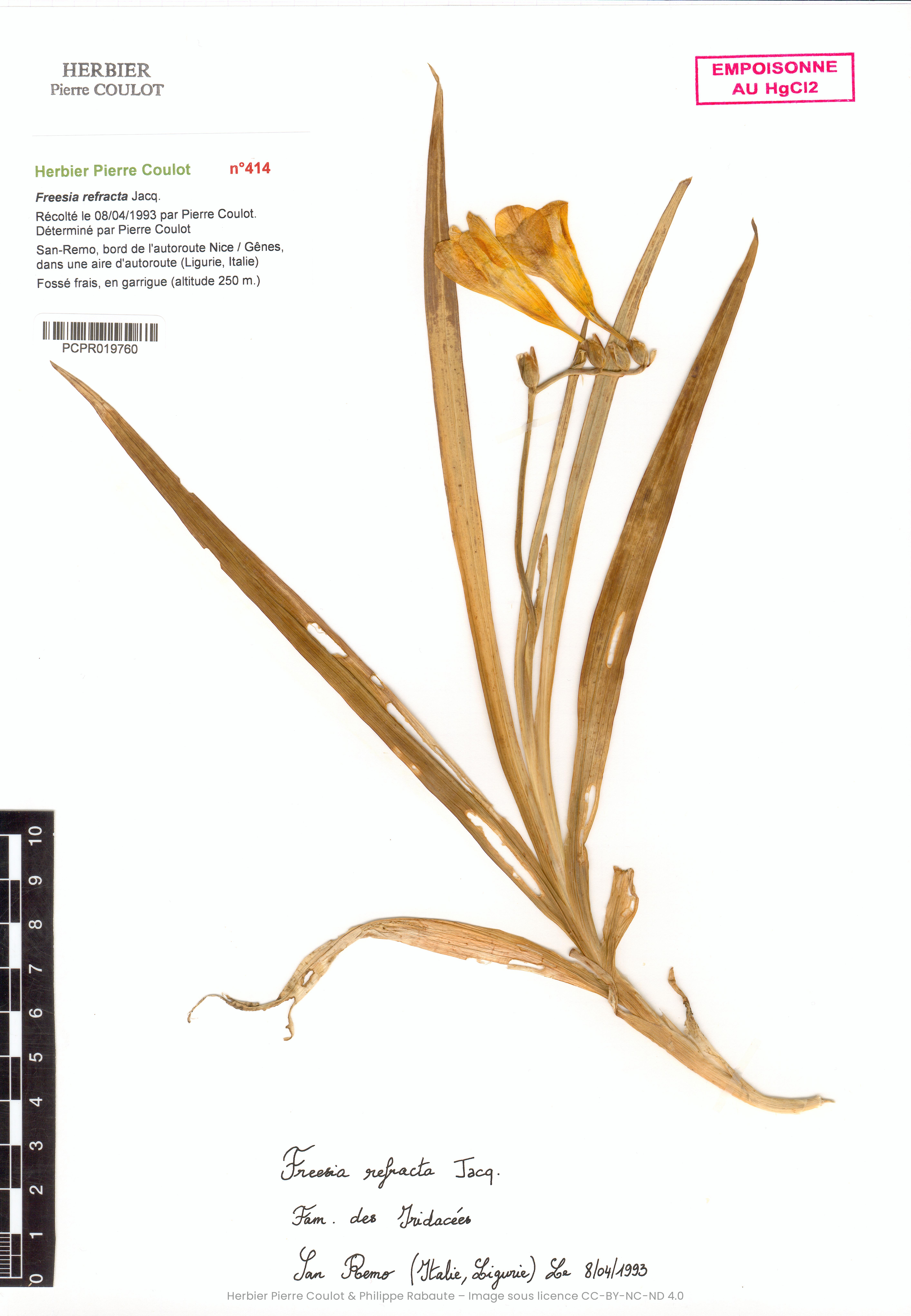 Lieu de récolte | San-Remo, bord de l'autoroute Nice / Gênes, dans une aire d'autoroute |