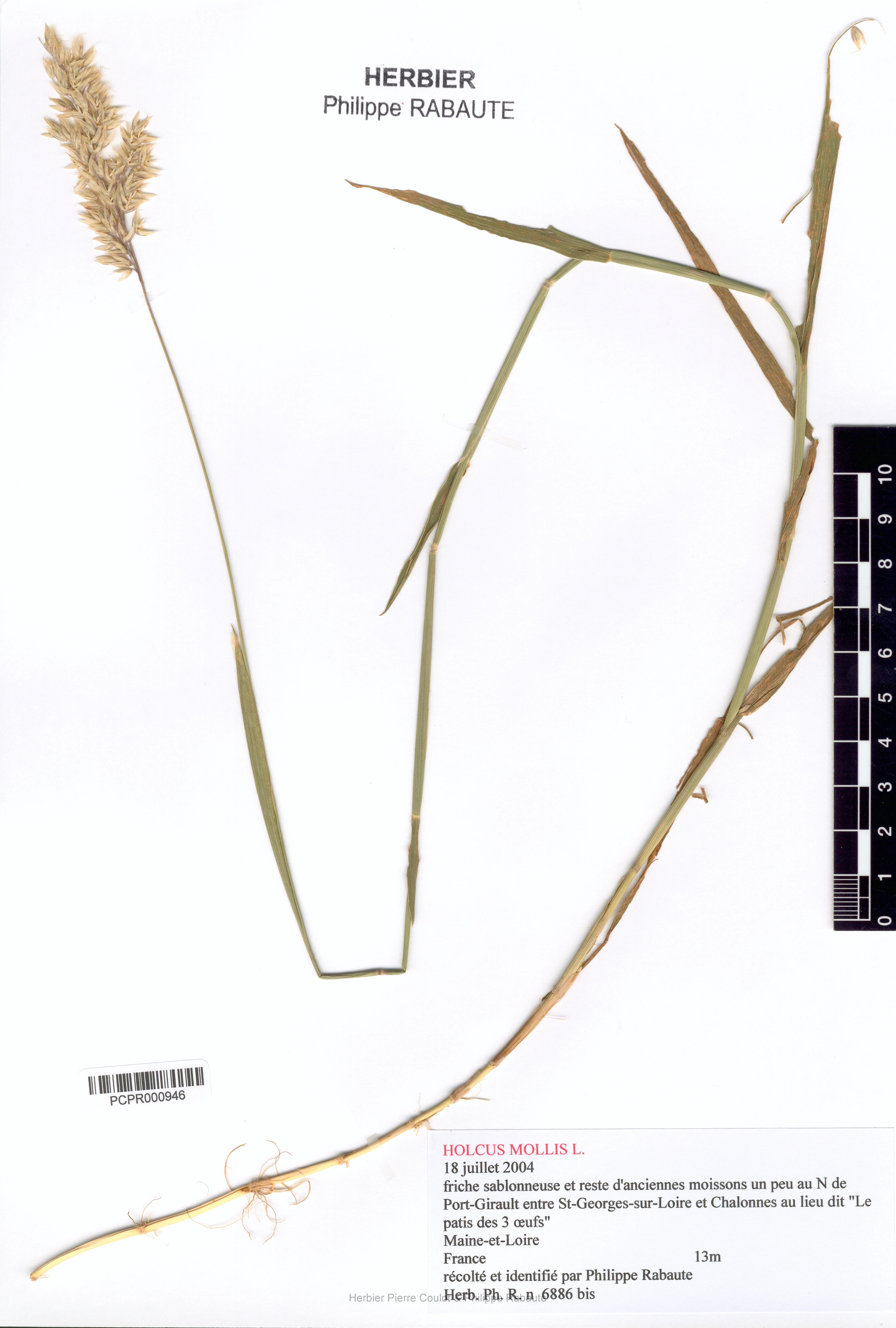 Lieu de récolte | Friche sablonneuse et reste d'anciennes moissons un peu au N de Port-Girault entre St-Georges-sur-Loire et Chalonnes au lieu dit "Le patis des 3 œufs" |