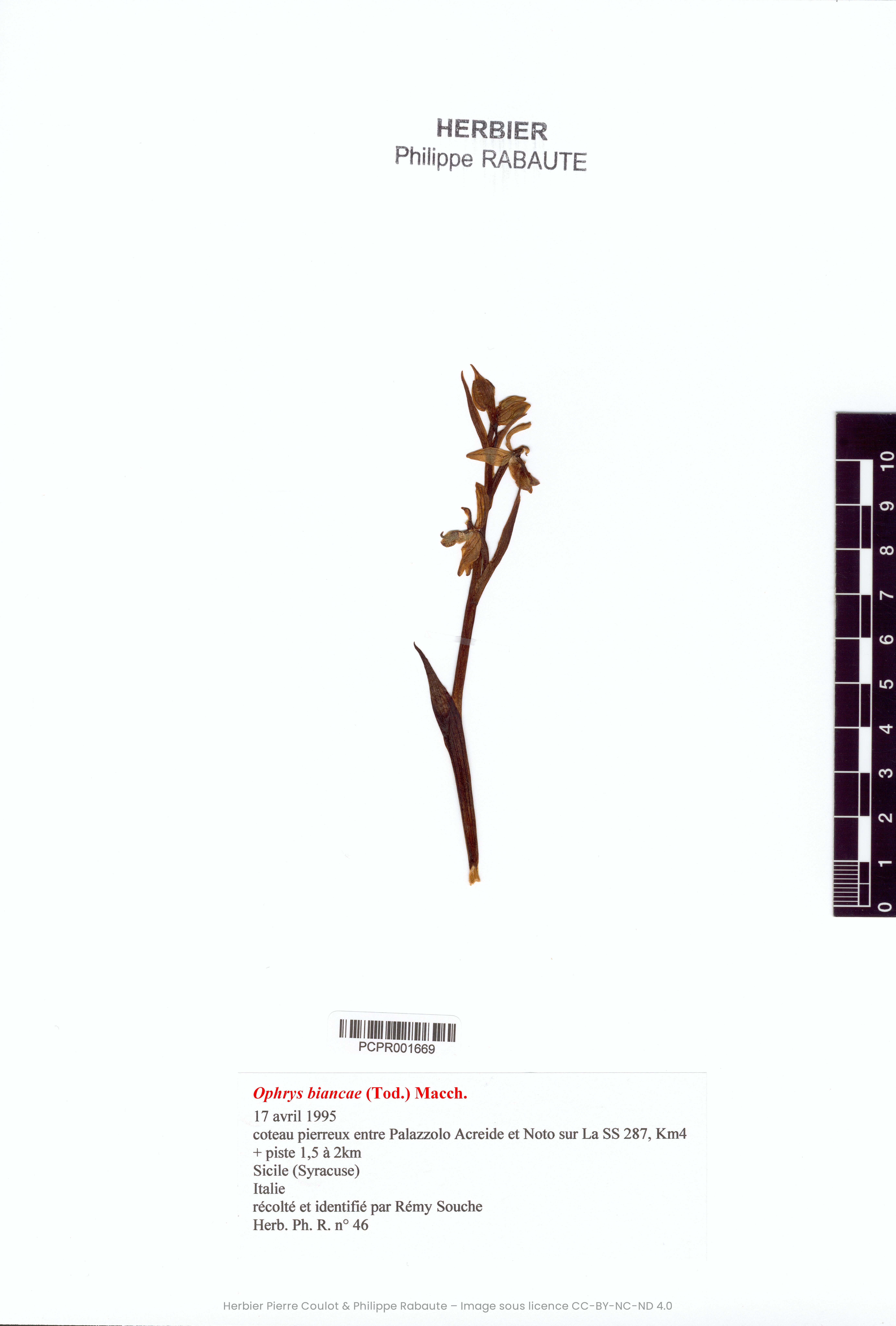 Lieu de récolte | Coteau pierreux entre Palazzolo Acreide et Noto sur La SS 287, Km4 + piste 1,5 à 2km |