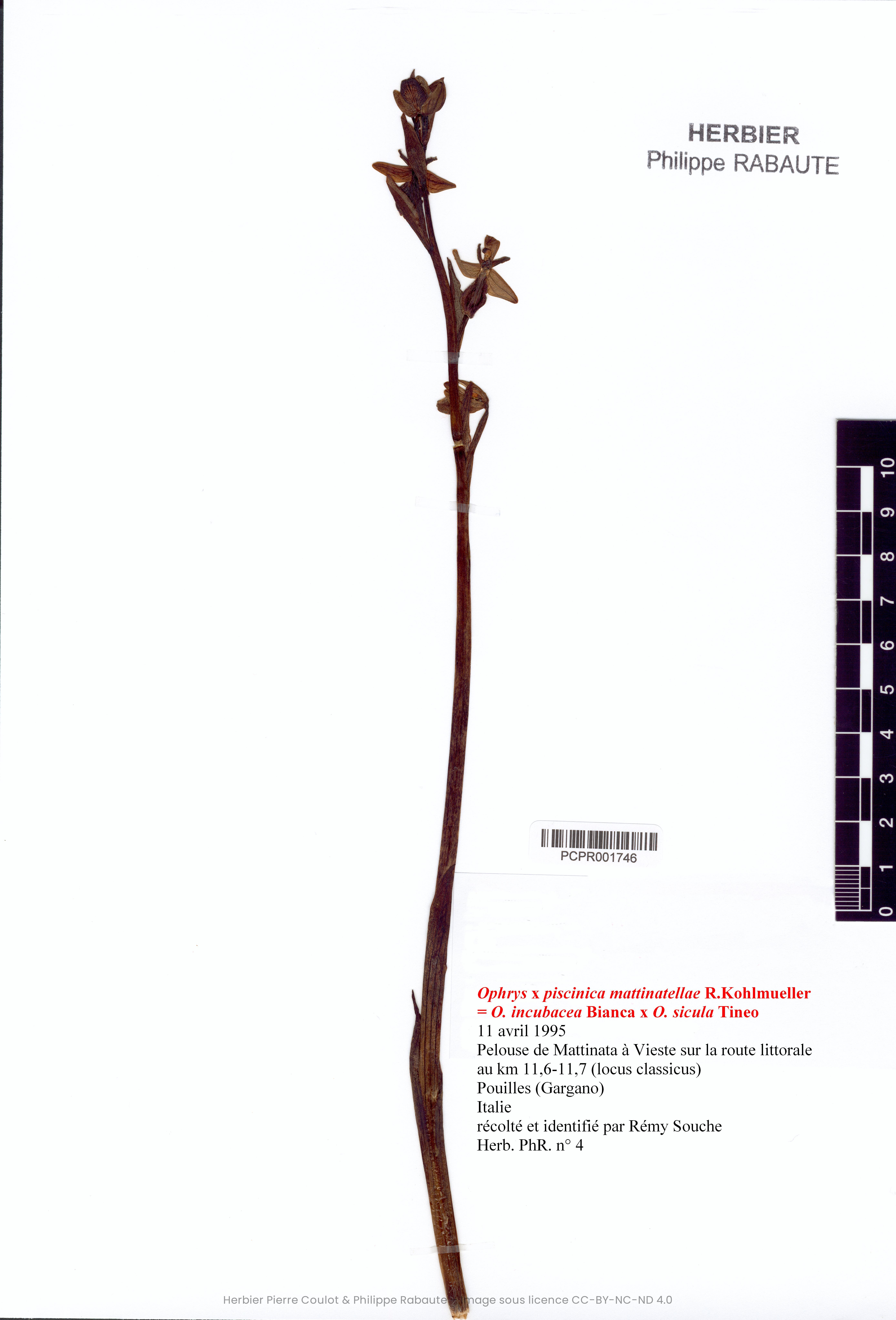 Lieu de récolte | Pelouse de Mattinata à Vieste sur la route littorale au KM11,6-11,7 (locus classicus) |