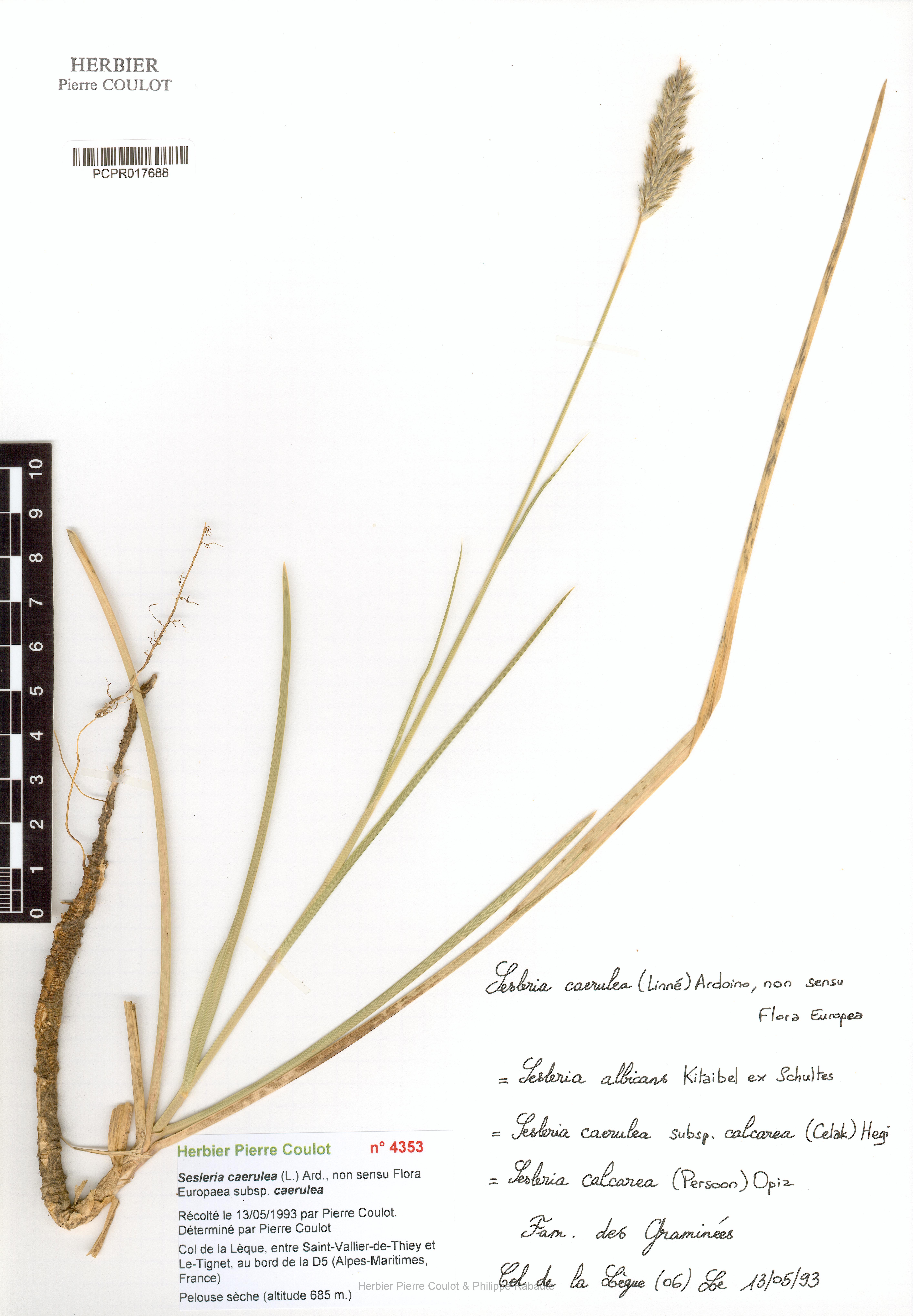 Sesleria caerulea (L.) Ard., non sensu Flora Europaea subsp. caerulea