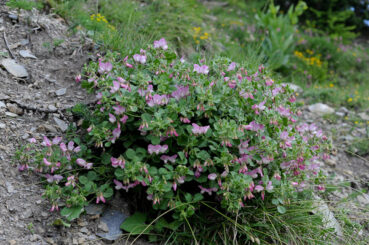 Ces deux associations ne rentrent bien dans aucune des trois alliances de Haute-Maurienne, on peut considérer l’Onobrychido saxatilis-Ononidetum rotundifoliae nov. comme typus nominis hoc loco de l’Odontito viscosi-Arctostaphylion uvae-ursi all. nov. hoc loco, caractérisé par Onobrychis saxatilis (photo 11), Ononis pusilla subsp. p., Odontites viscosus subsp. v. (photo 12), Thymus praecox, Anthyllis montana, Astragalus austriacus, Viola rupestris ; un relevé en est aussi publié par Braun-Blanquet (1922 : 86-87). Ces quatre alliances plutôt ouest-alpines se distinguent assez nettement des syntaxons centre- et est-alpins décrits par Hölzel, ce qui pourrait justifier leur rapprochement dans un ordre ou un sous-ordre. Braun-Blanquet et Richard (1949) rapportent aussi d’autres relevés qui peuvent se rattacher à cet ensemble, par exemple celui de leurs pages 112-113. Par ailleurs, il faudrait vérifier si les communautés pyrénéennes et ibériques à Ononis rotundifolia peuvent aussi s’y rattacher.