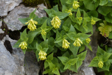 Tout cet ensemble de dix-huit colonnes possède la valeur d’une alliance des Alpes de Slovénie caractérisée ou différenciée des alliances voisines par de nombreux taxons, dont Aconitum lamarckii, A. angustifolium, Dryopteris villarii, D. expansa, Festuca calva, F. nitida, Aquilegia nigricans, Arabis procurrens subsp. vochinensis, Knautia drymeja, Paederota lutea, Gymnocarpium robertianum, Cyclamen purpurascens (photo 17), Anemone nemorosa, A. trifolia, Galium laevigatum, Phegopteris connectilis, Astrantia carniolica (photo 18), A. bavarica, Cirsium erisithales, Saxifraga cuneifolia s. l., Calamagrostis arundinacea, Senecio cacaliaster, Luzula luzuloides, L. luzulina, Geum rivale, Rumex arifolius, Laserpitium peucedanoides, Veratrum album subsp. lobelianum, Homogyne sylvestris, H. discolor (photo 19), Heliosperma alpestre (photo 20)… D’autres comme Aposeris foetida (photo 21), Betonica alopecuros (photo 22), Helleborus niger… sont communs à cette unité et au Knautio dispsacifoliae-Rhododendrion hirsuti. Cette belle alliance slovène peut être dénommée Homogyno sylvestris-Rhodothamnion chamaecisti all. nov. hoc loco, typus nominis hoc loco : le Paederoto luteae-Rhododendretum hirsuti nov.