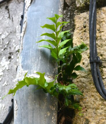 Les conditions d’installation de cette fougère sont très souvent les mêmes : murs anciens ou récents avec fissures, offrant une humidité importante au moins saisonnière (derrière une gouttière, sous un rebord de toit, angle avec infiltrations…).