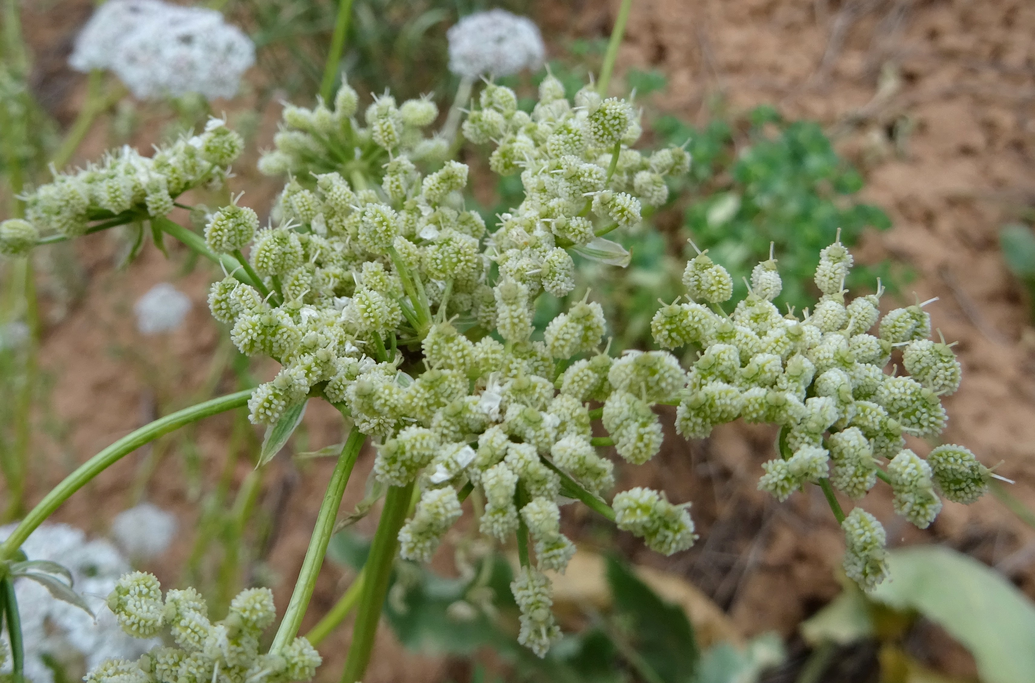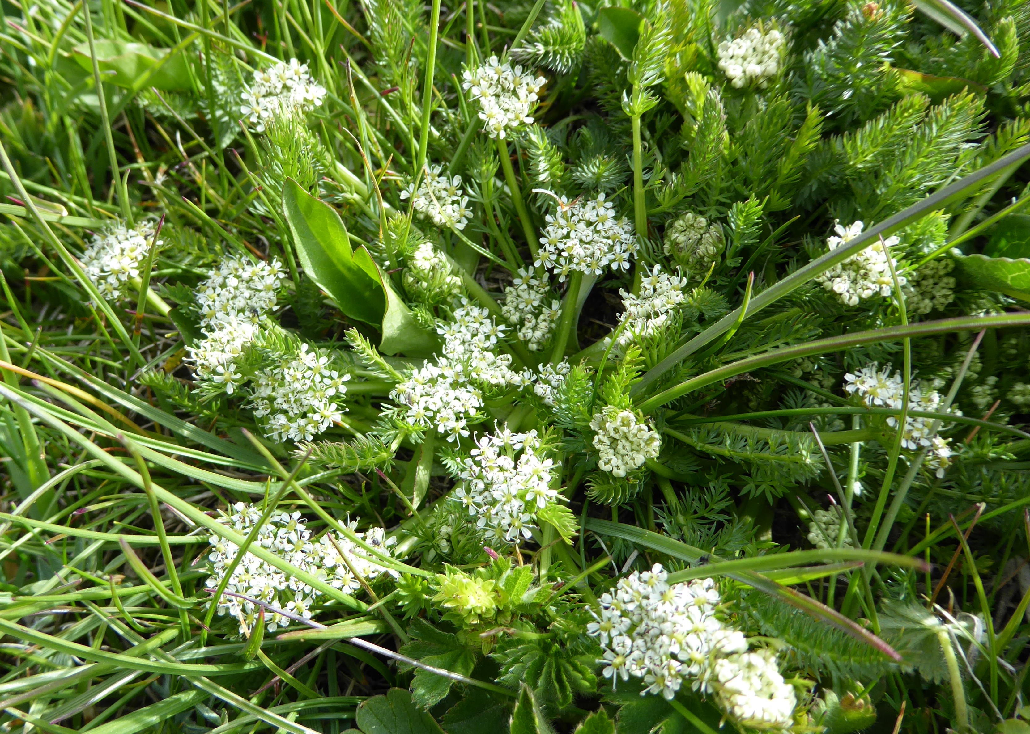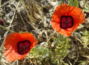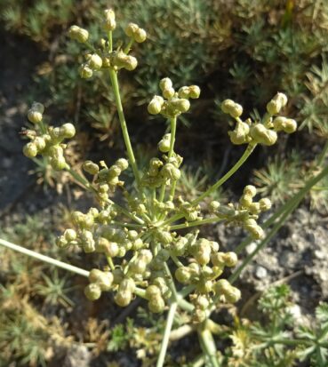 Nous y observons le « vrai » Prangos pabularia Lindl. (planche 54 ; PCPR020896, PCPR020897, PCPR003500 & PCPR021034), robuste apiacée aux fruits à côtes cérébriformes. Il se distingue de la plante plus occidentale que nous avons observée en Arménie et en Turquie et avec laquelle elle a été confondue, Prangos lophoptera Boiss. Avec elle poussent Nepeta nuda L. subsp. nuda (photo 111 ; PCPR021876 & PCPR021877), Adonis aestivalis L. var. parviflora M. Bieb. (PCPR021875), Dictamnus angustifolius et Turgenia latifolia (L.) Hoffm., ici en milieu primaire.