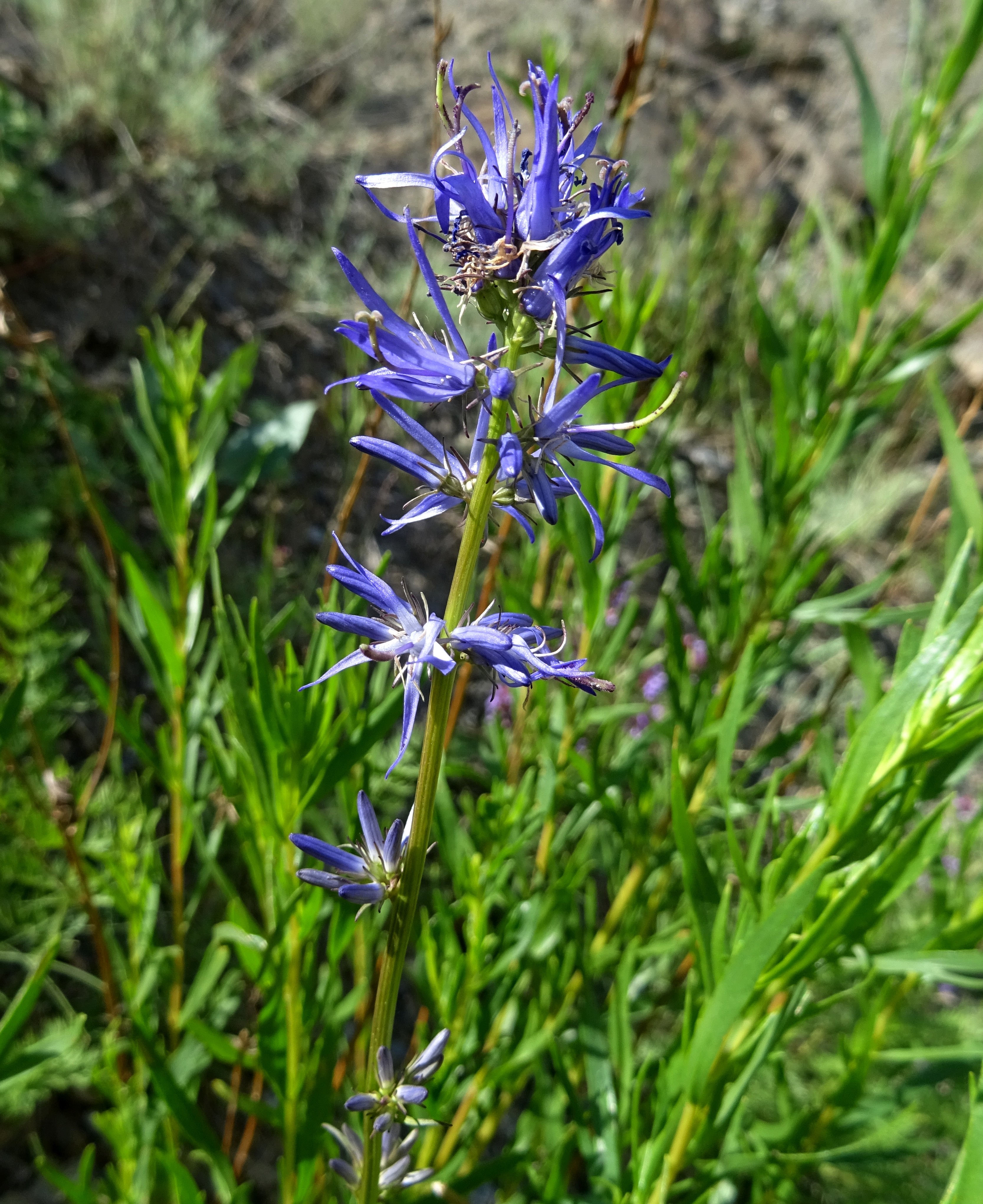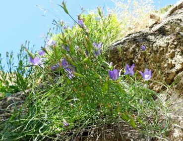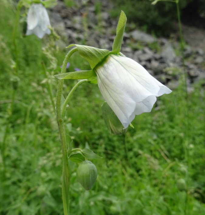 Un peu plus haut, à 2 100 m. d’altitude (41° 55′ 07.5″ N, 74° 06′ 58.2″ E), nous récoltons une raiponce (photo 55) qui ressemble fortement à Asyneuma argutum (Regel) Bornm. subsp. argutum, dans une forme à feuilles fines, lancéolées (PCPR021482 & PCPR021483). À l’analyse elle correspondrait à une plante du « groupe attenuatum– trautvetteri », qui n’est pas reconnu par certains auteurs. Nous nous tiendrons donc à cette identification, faute de mieux. Scutellaria adenostegia est également abondant ici.