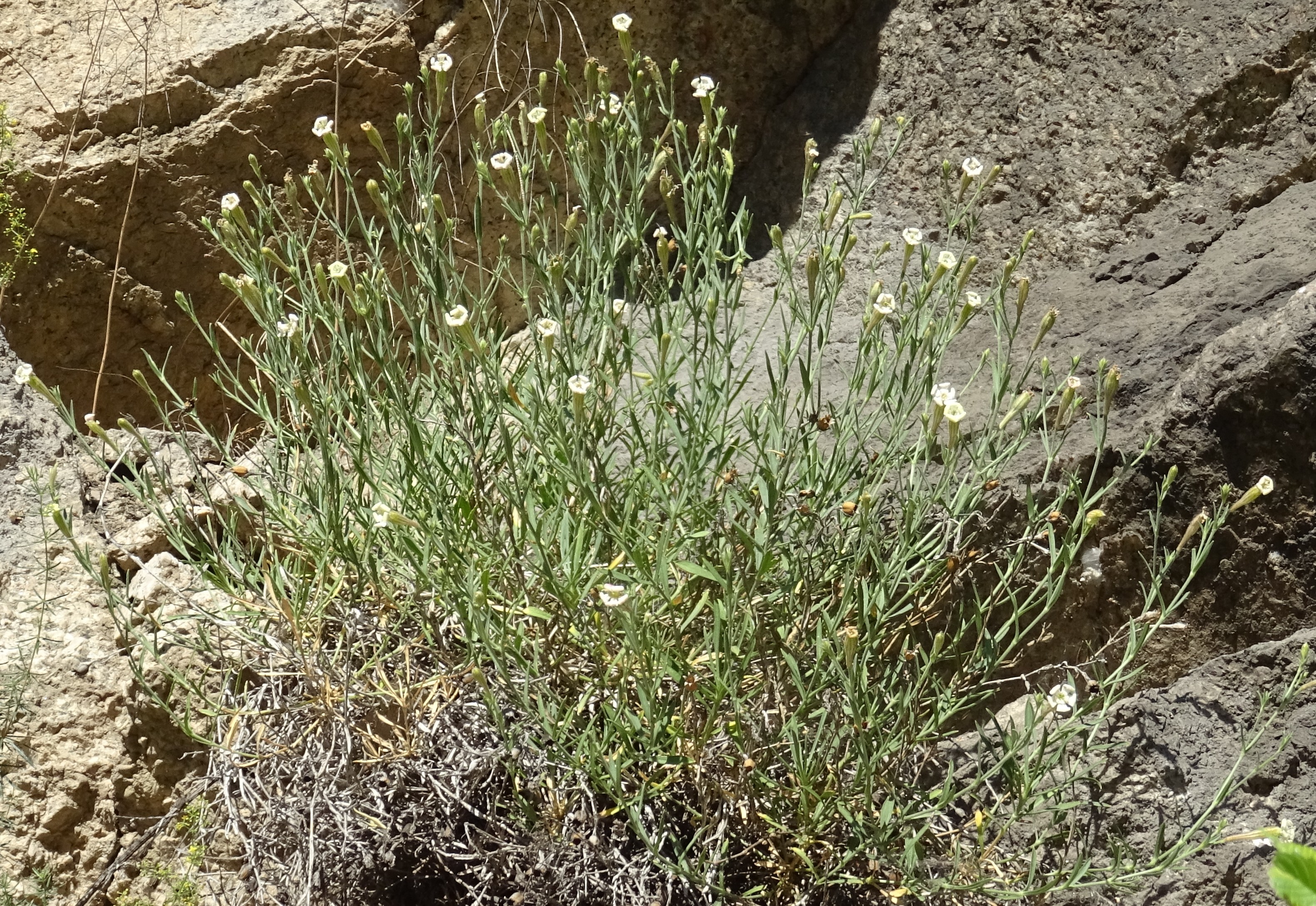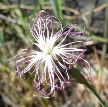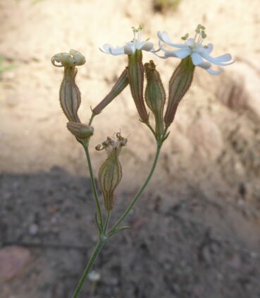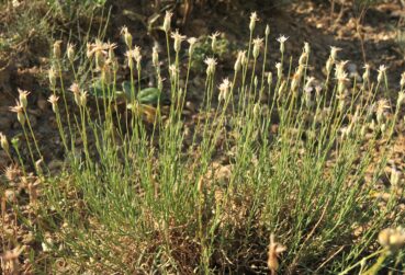 Le premier arrêt, près de la limite entre les provinces de Jalal-Abad et Talas (42° 01′ 44.0″ N, 72° 50′ 23.6″ E ; 1 375 m) nous permet d’observer sur les rochers plusieurs espèces intéressantes : Campanula stevenii Trautv. subsp. alberti (Trautv.) Victorov (photo 115 ; PCPR002935, PCPR002936, PCPR021493 & PCPR021494), Lactuca dissecta D. Don (à corolles bleu-rosé, feuilles nettement auriculées et akène à bec blanc de 3,5-4 mm de long ; photo 116 ; PCPR021918 & PCPR021919), Silene kuschakewiczii Regel & Schmalh. (photo 117 ; PCPR021938 & PCPR021939) et une forme à corolles blanches de Carduus nutans L. (PCPR021920).