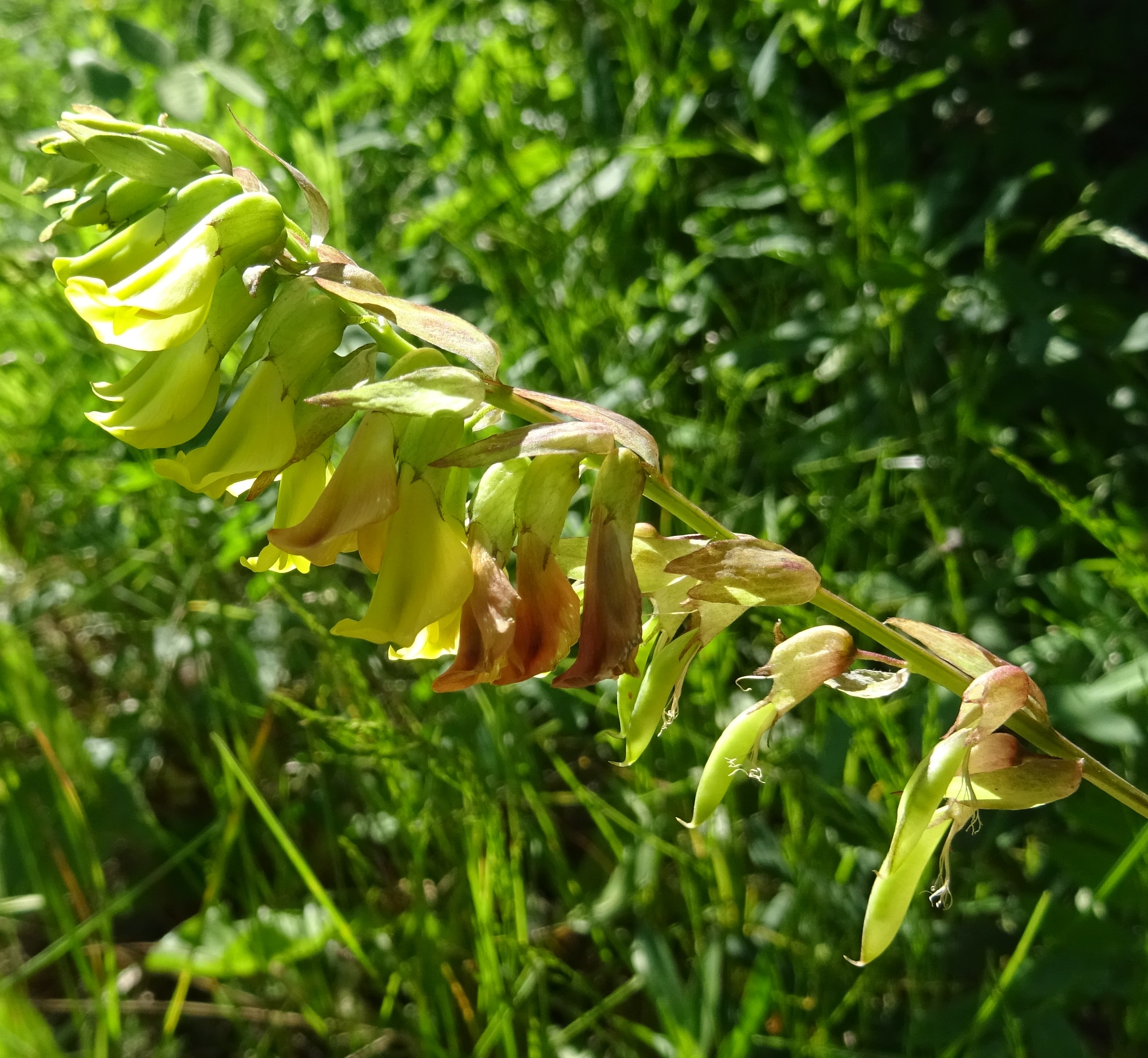 L’arrêt suivant (41° 54′ 52.3″ N, 74° 06′ 36.9″ E ; 2 170 m) nous offre l’un des joyaux de notre séjour, un astragale dressé à aspect de sainfoin, dont les fruits sont fortement renflés et marbrés. Il rappelle en ce sens certaines espèces nord-américaines. Il s’agit d’ailleurs d’une espèce de la section Oroboidei A. Gray, Astragalus hemiphaca Kar. & Kir. (planche 17 ; PCPR021728, PCPR021729 & PCPR021730). Cette section, décrite d’Amérique du Nord par Gray, est censée regrouper des plantes de l’Ancien et du Nouveau Monde, en particulier en raison de la forme des fruits. Il s’agit en réalité très probablement de plantes ayant évolué vers des morphologies proches mais sans doute génétiquement assez éloignées. Les plantes asiatiques pourraient donc être reversées dans la section Hemiphaca Bunge, décrite en 1868 (contre 1864 pour Oroboidei), comme l’évoquent Podlech et Zarre (2013) sans pour autant faire ce choix.