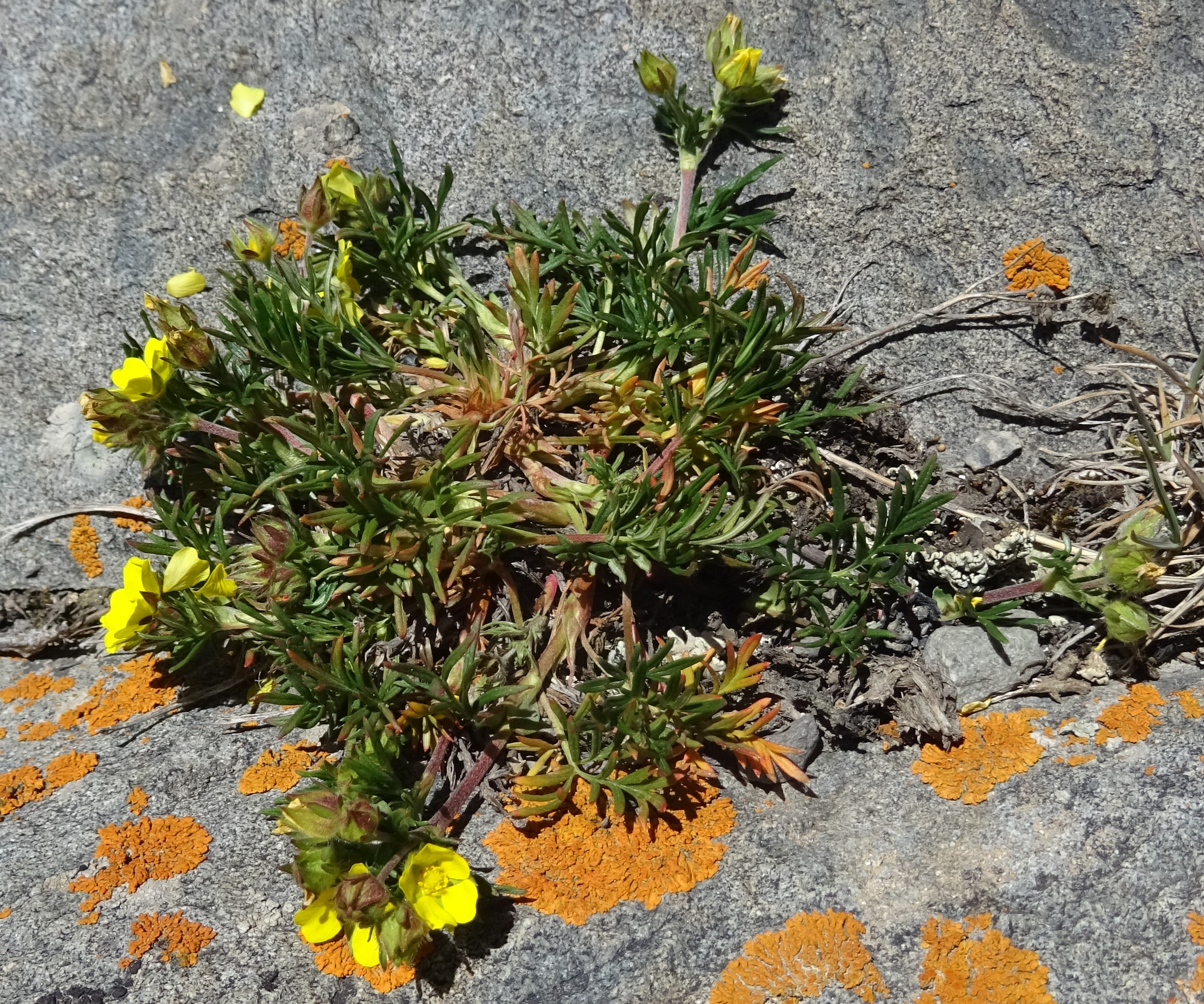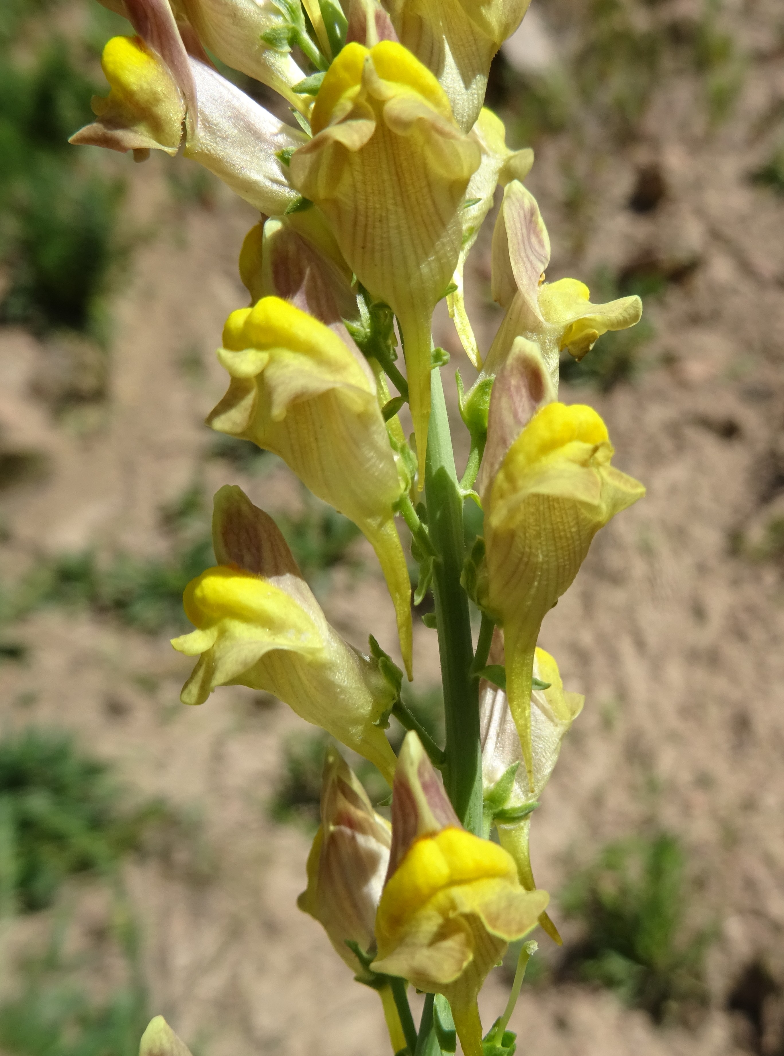 En rejoignant la haute vallée du Chychkan nous faisons trois nouveaux arrêts rapides. Le premier, près du Chychkan Tourist Complex (42° 09′ 40.2″ N, 72° 52′ 13.3″ E ; 1 943 m) se fait à la vue de Papaver laevigatum M. Bieb., ici en pleine floraison avec ses pétales frangés (photo 122 ; PCPR021903 & PCPR022002). Avec lui nous observons Spiraea pilosa Franch., espèce à pétioles, pédicelles et sépales velus et petites feuilles rhomboïdales cunées (photo 121 ; PCPR021904 & PCPR021905). Plus loin, sur les talus (42° 09′ 50.8″ N, 72° 54′ 25.3″E ; 2 075 m), nous revoyons Rosa ecae Aitch., ici parfaitement fleurie avec ses petites corolles jaunes de moins de 2 cm de diamètre (photo 123 ; PCPR021906 & PCPR021907). Enfin, dans des éboulis situés un peu plus au nord (42° 10′ 01.7″ N, 72° 55′ 00.1″ E ; 2 120 m), nous observons une grande linaire endémique, Linaria jaxartica Levichev (photo 124 ; PCPR021901 & PCPR021902), dont l’aire est très restreinte à cette région.