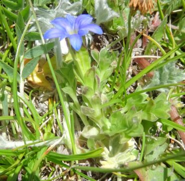 Une des plus belles stations botaniques du voyage est atteinte un peu plus haut dans le col, quand nous gagnons des pelouses alpines très humides traversées par de nombreux ruisseaux (42° 22′ 37.1″ N, 73° 49′ 20.1″ E ; 2 794 m). L’aspect général multicolore augure de belles découvertes. Nous ne serons pas déçus et passerons un certain temps à répertorier les espèces présentes, même si certains Carex et Gagea résisteront à nos séances d’identification de retour en France.