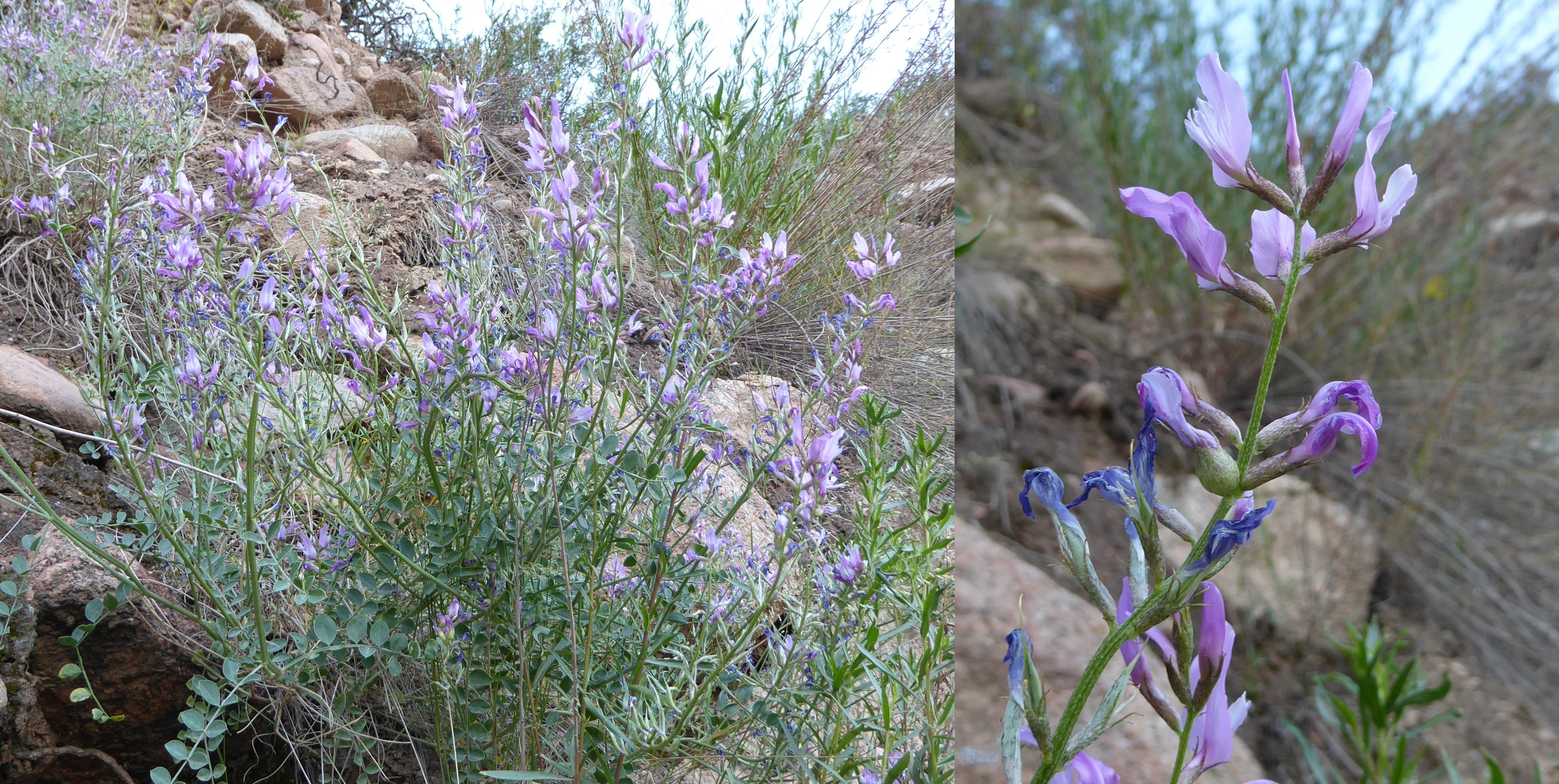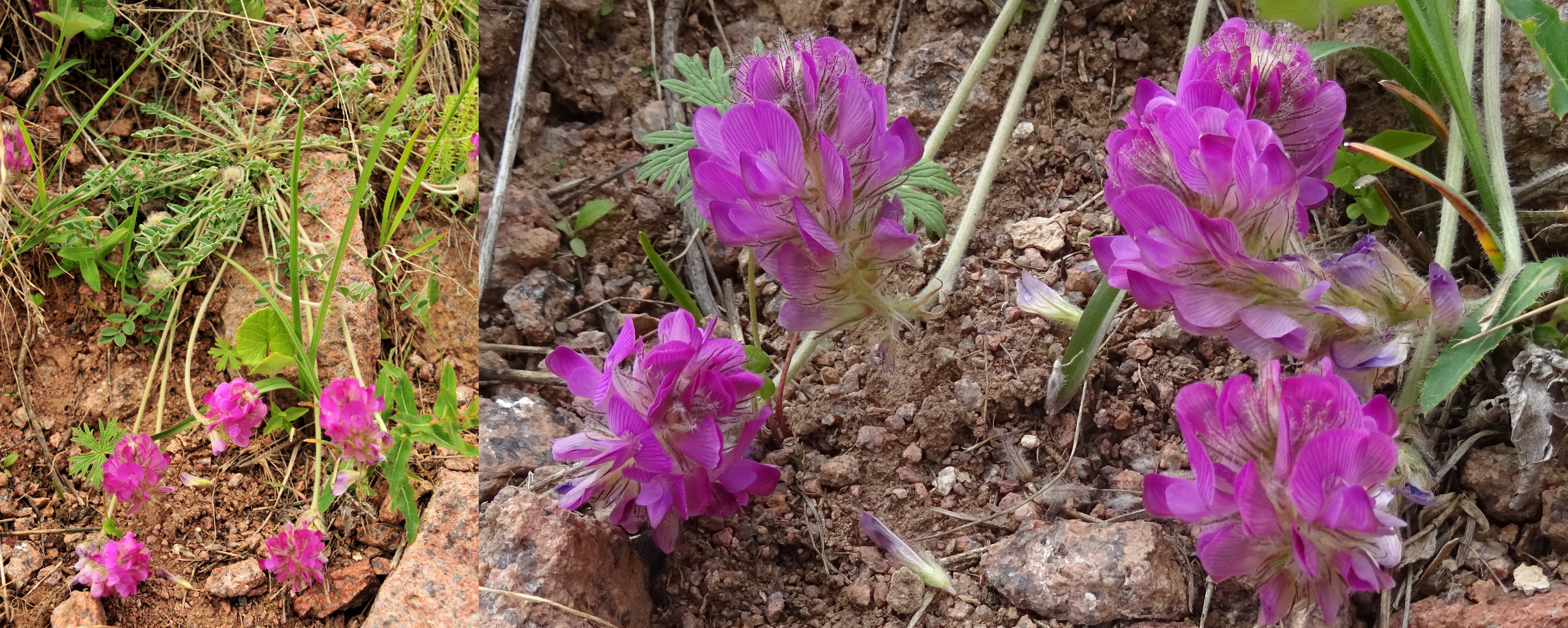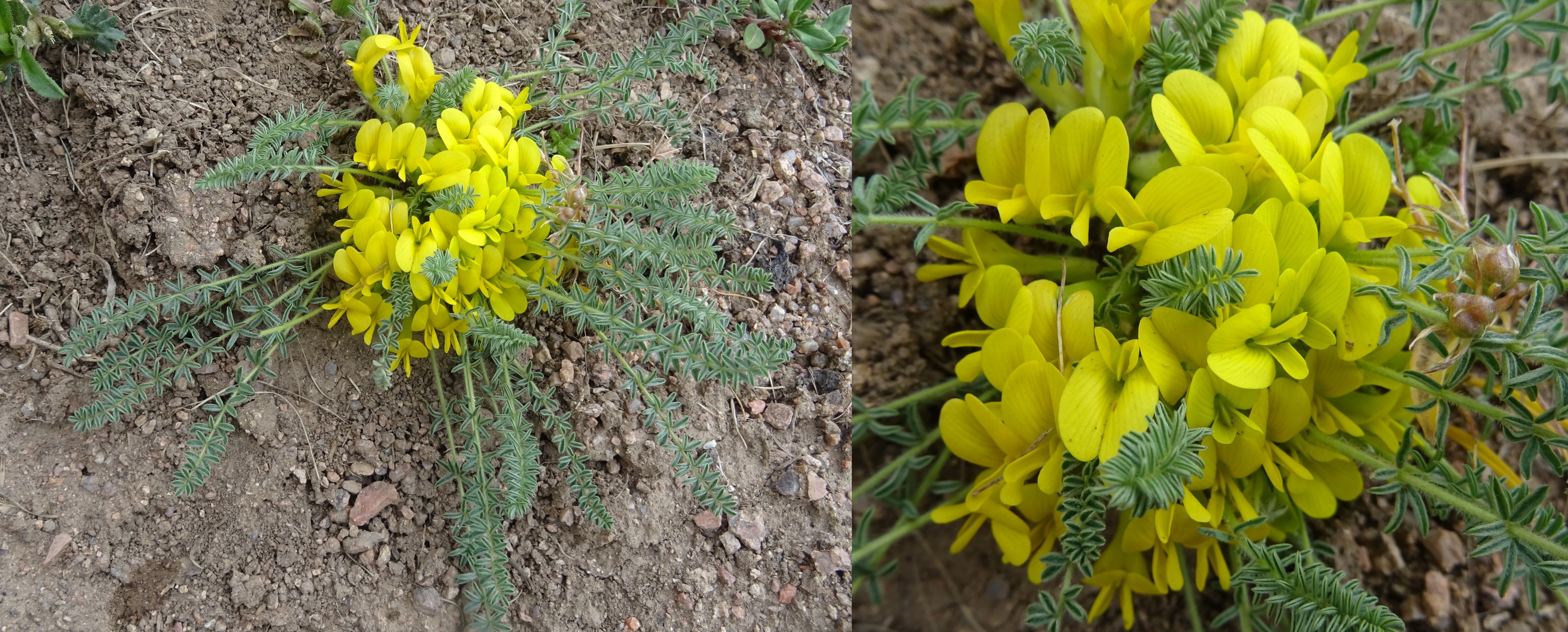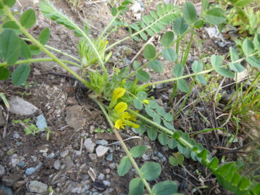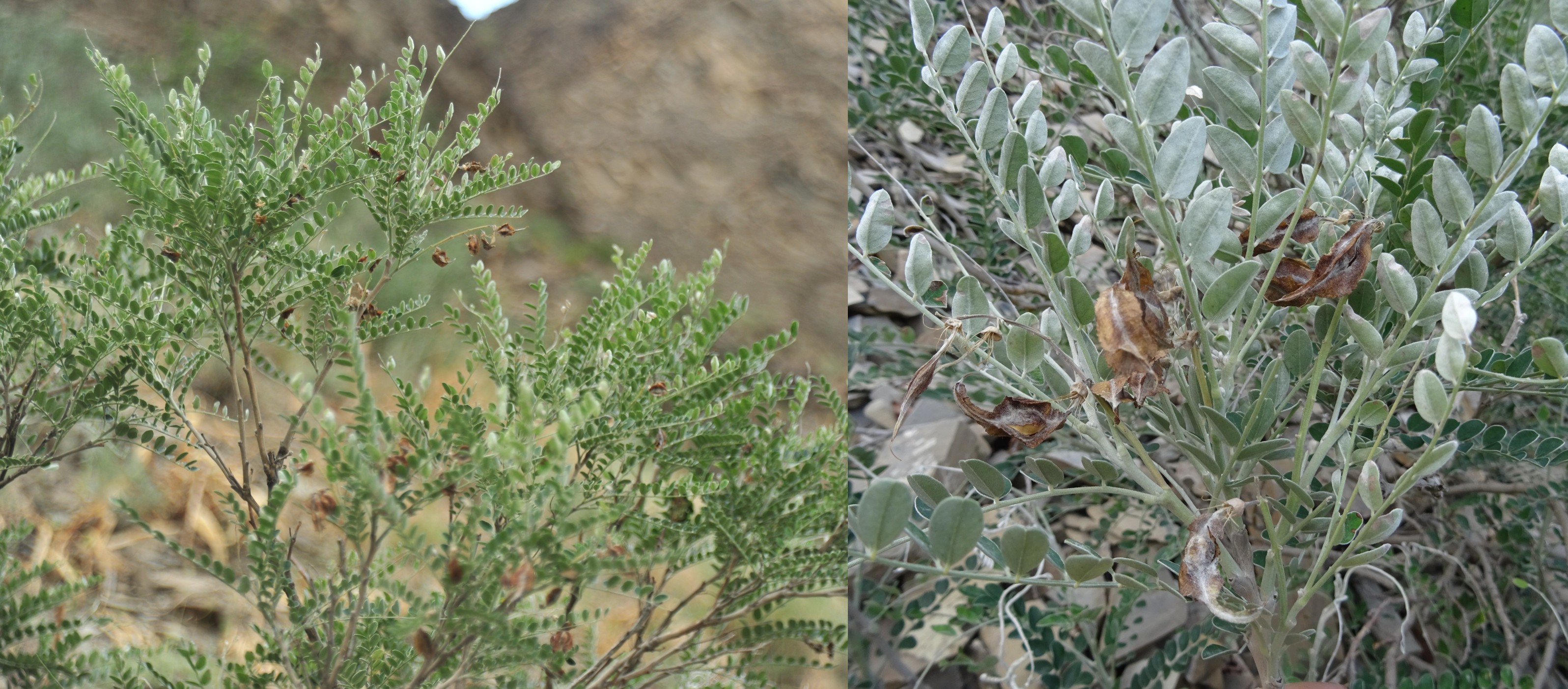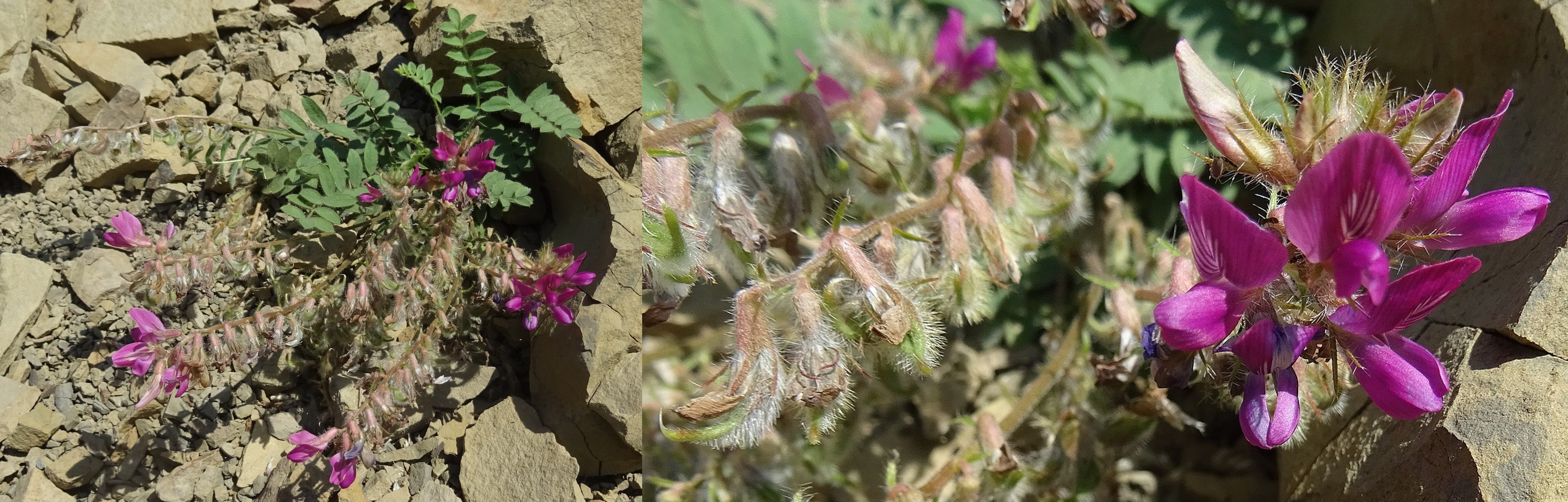 Le court arrêt qui suivra nous permettra d’observer sur des talus rocailleux deux des plantes les plus remarquables du séjour, au sud de Dzhangi-Dzhol (41° 30′ 51.5″ N, 72° 14′ 24.8″ E ; 1 125 m). La première est Oxytropis litwinowii B. Fedtsch., aux fruits velus et arqués évoquant ceux des astragales de la section Platyglottis Bunge (planche 43 ; PCPR021818 & PCPR021819). La seconde est une trigonelle à fruits aplatis, Trigonella aristata Vassilcz. (planche 44 ; PCPR021816 & PCPR021817). Elle se distingue de T. adscendens (Nevski) Afan. & Gontsch. par ses feuilles à folioles de plus de 7 mm de large.