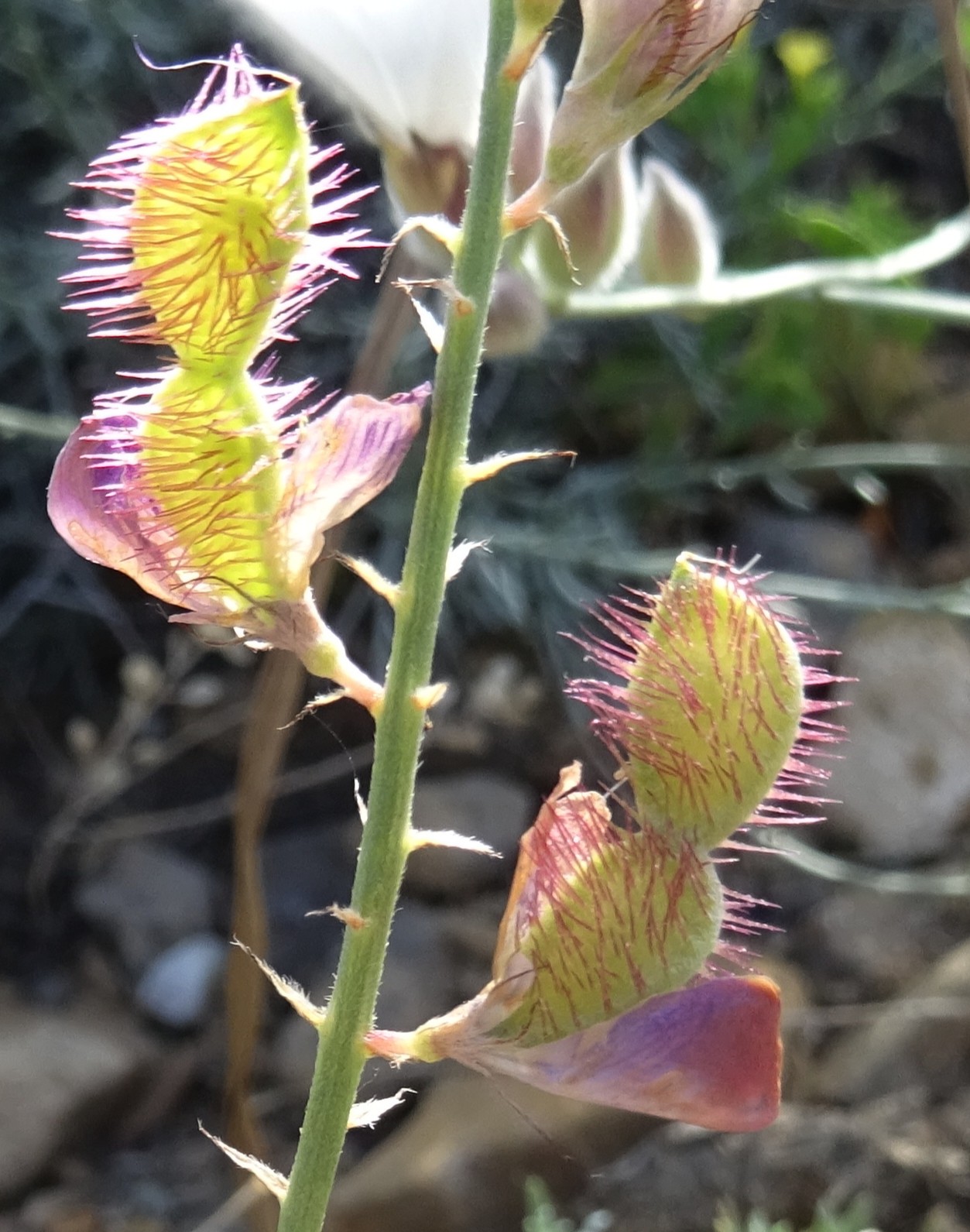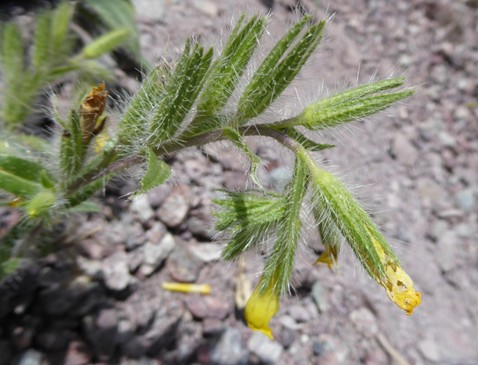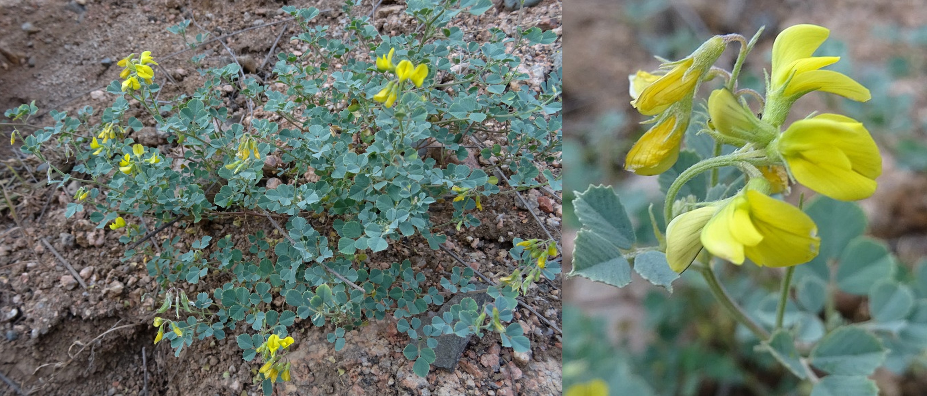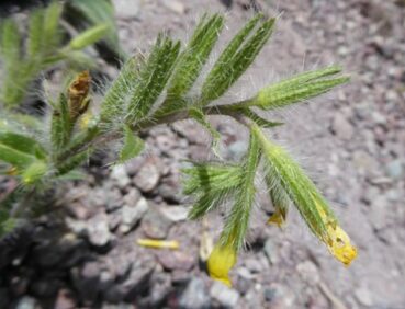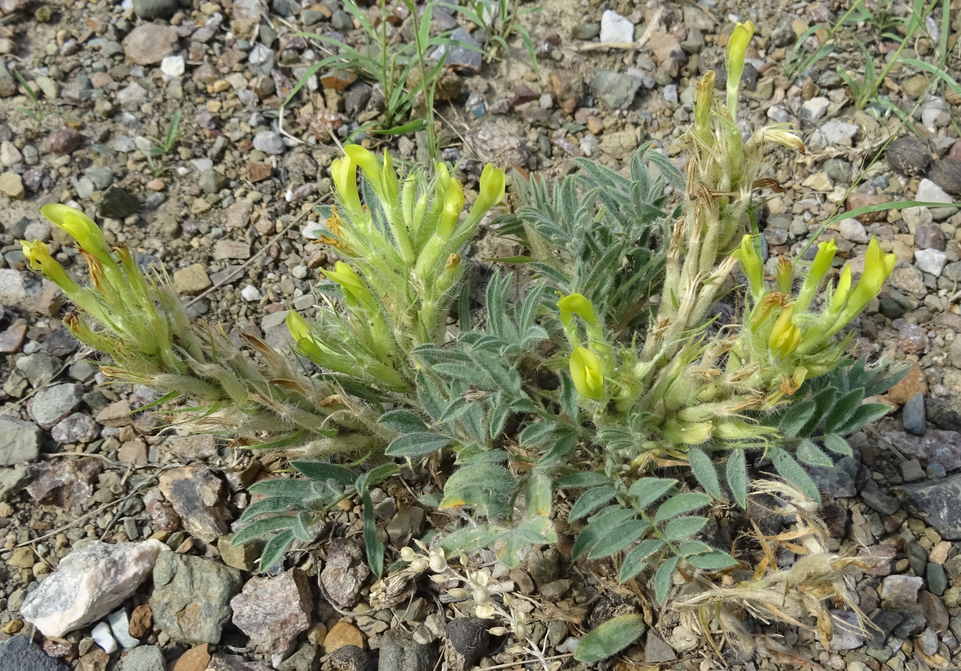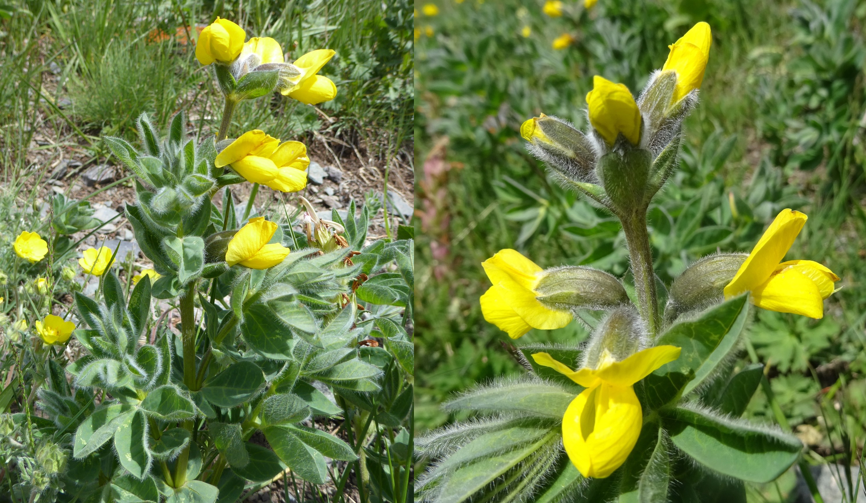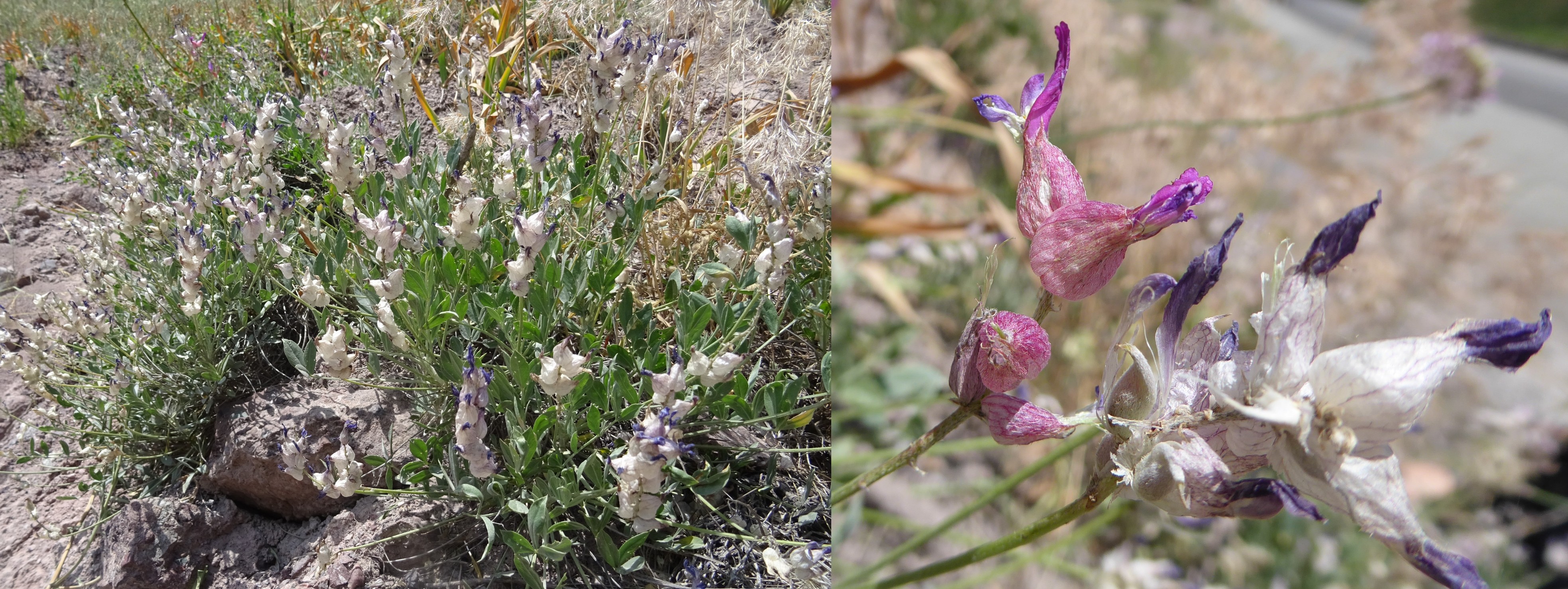 Le court arrêt qui suivra nous permettra d’observer sur des talus rocailleux deux des plantes les plus remarquables du séjour, au sud de Dzhangi-Dzhol (41° 30′ 51.5″ N, 72° 14′ 24.8″ E ; 1 125 m). La première est Oxytropis litwinowii B. Fedtsch., aux fruits velus et arqués évoquant ceux des astragales de la section Platyglottis Bunge (planche 43 ; PCPR021818 & PCPR021819). La seconde est une trigonelle à fruits aplatis, Trigonella aristata Vassilcz. (planche 44 ; PCPR021816 & PCPR021817). Elle se distingue de T. adscendens (Nevski) Afan. & Gontsch. par ses feuilles à folioles de plus de 7 mm de large.