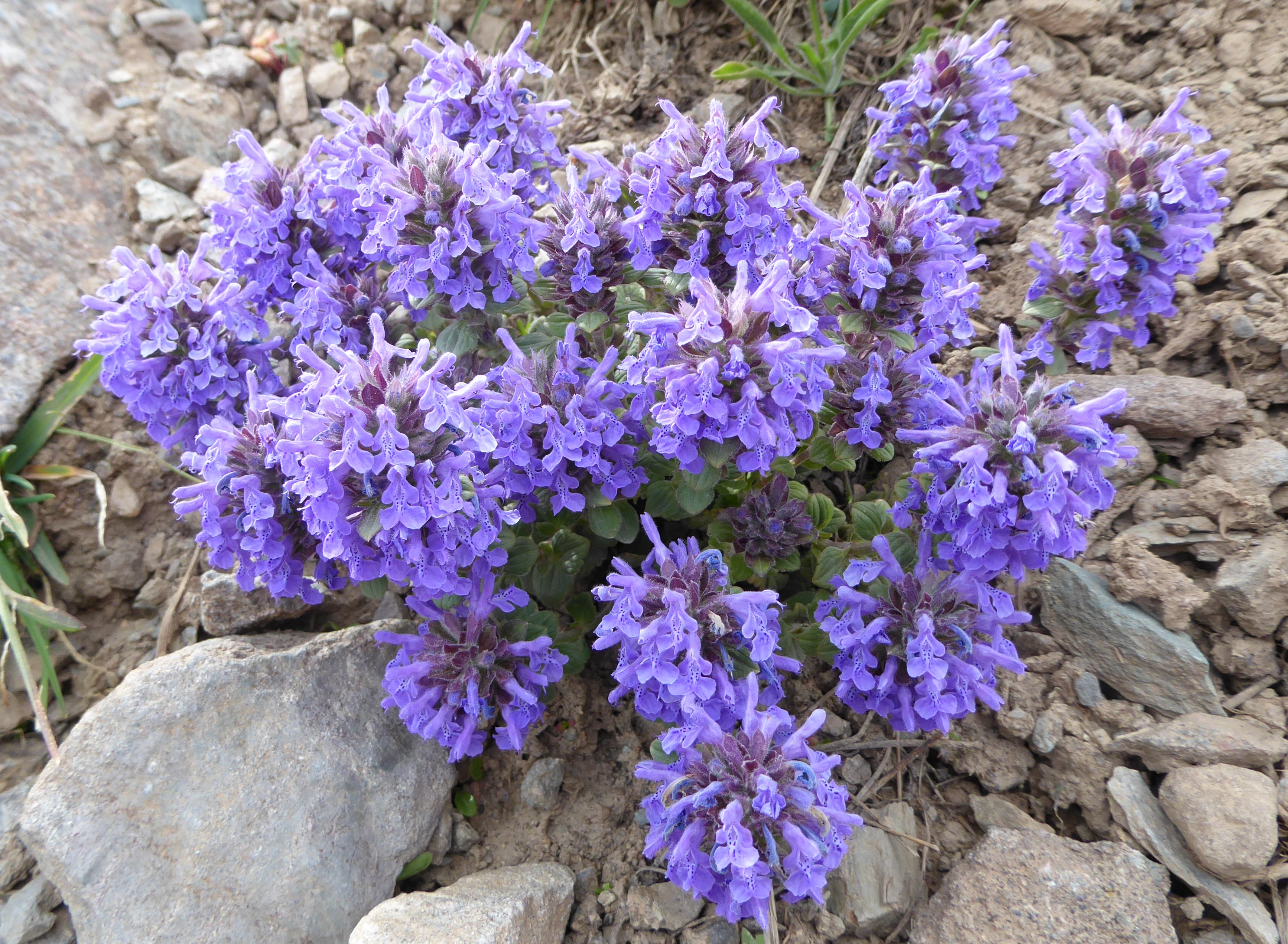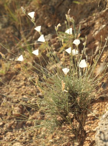 La végétation basse est d’une extrême richesse, avec de nombreux endémiques. La première est Convolvulus krauseanus Regel & Schmalh., magnifique liseron vivace à souches très robustes formant de grosses touffes (photo 89 ; PCPR021836 & PCPR021837) ; il n’est connu que de l’ouest du Kirghizistan et du nord-ouest du Tadjikistan. Une autre plante remarquable des lieux est le sainfoin Hedysarum gypsaceum Korotkova, caractéristique avec ses feuilles paucifoliolées et sa très petite taille (photo 90 ; PCPR021825 & PCPR021827), lui aussi à répartition très réduite à cette zone. Il en est de même pour Thymus seravschanicus Klokov, aux dents de la lèvre supérieure du calice largement triangulaires, égales et courtement ciliées (photo 91 ; PCPR021835), Scutellaria sieversii Bunge, qui présente des glandes minuscules sur les bractées (planche 40) et l’apiacée Schrenkia vaginata (Ledeb.) Fisch. & C.A. Mey., à fruits subsphériques (évoquant ceux d’un Bifora) et involucre nul (photo 92 ; PCPR003540).