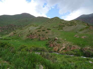 Notre journée sera consacrée à parcourir la haute vallée de la rivière Naryn, puis celle de son affluent Karasuu, situées au nord de Tachkoumyr en direction de la Réserve de biosphère Sary-Chelek. Cet endroit magnifique est notamment très prisé pour ses grands lacs glaciaires, au bord desquels les Kirghizes aiment passer du temps en famille. Même si nous sommes en plein milieu de la semaine nous pourrons le constater aujourd’hui.