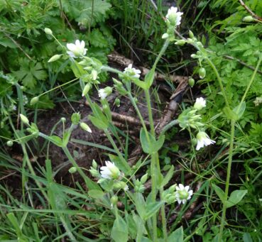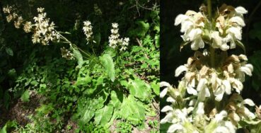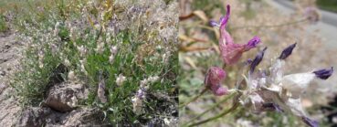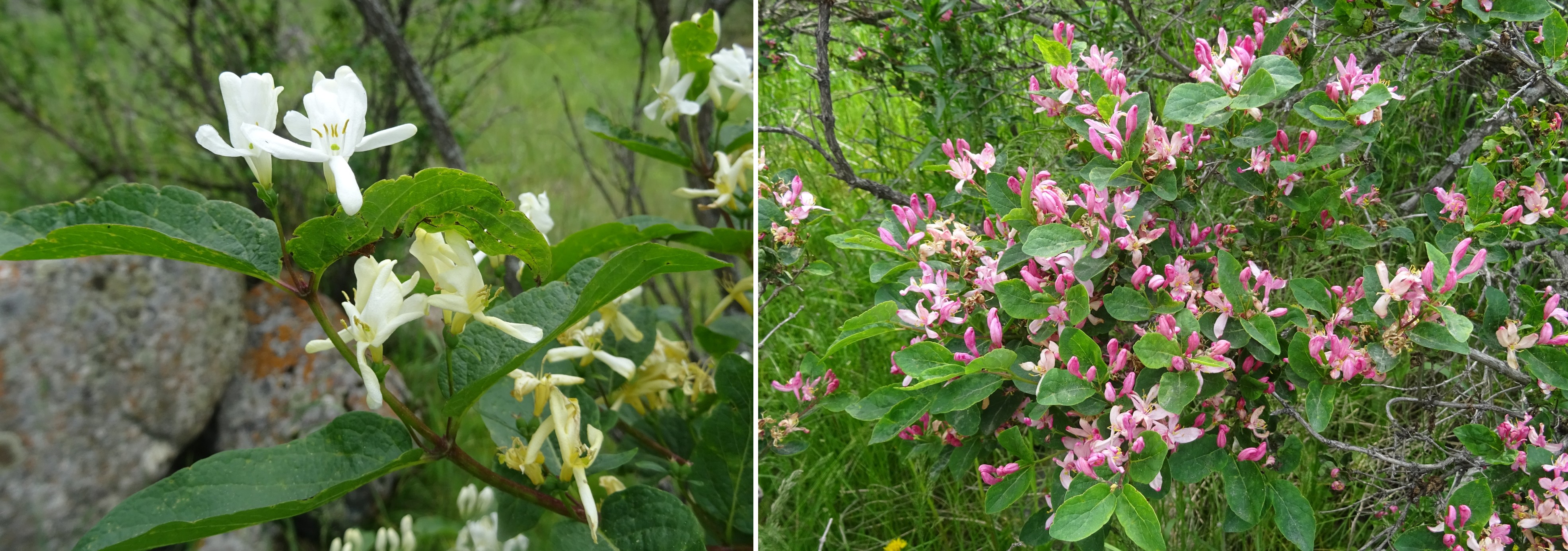Toujours dans cette zone, mais quelques hectomètres plus bas (42°36’43.6″ N, 74° 29′ 04.7″ E ; alt. 1 792 m), un arbuste forme des boules d’environ 1,5 m. de haut. Certains ont des fleurs blanches et d’autres des fleurs roses (planche 2). L’analyse des échantillons montre qu’il s’agit de la même plante, Lonicera tatarica L. (PCPR021648, PCPR021649), qui a cette particularité. Cette plante particulièrement ornementale est largement utilisée dans les jardins, ce qui se comprend parfaitement. À ses pieds nous relevons Ervum tetraspermum L. (PCPR021651, PCPR021652).