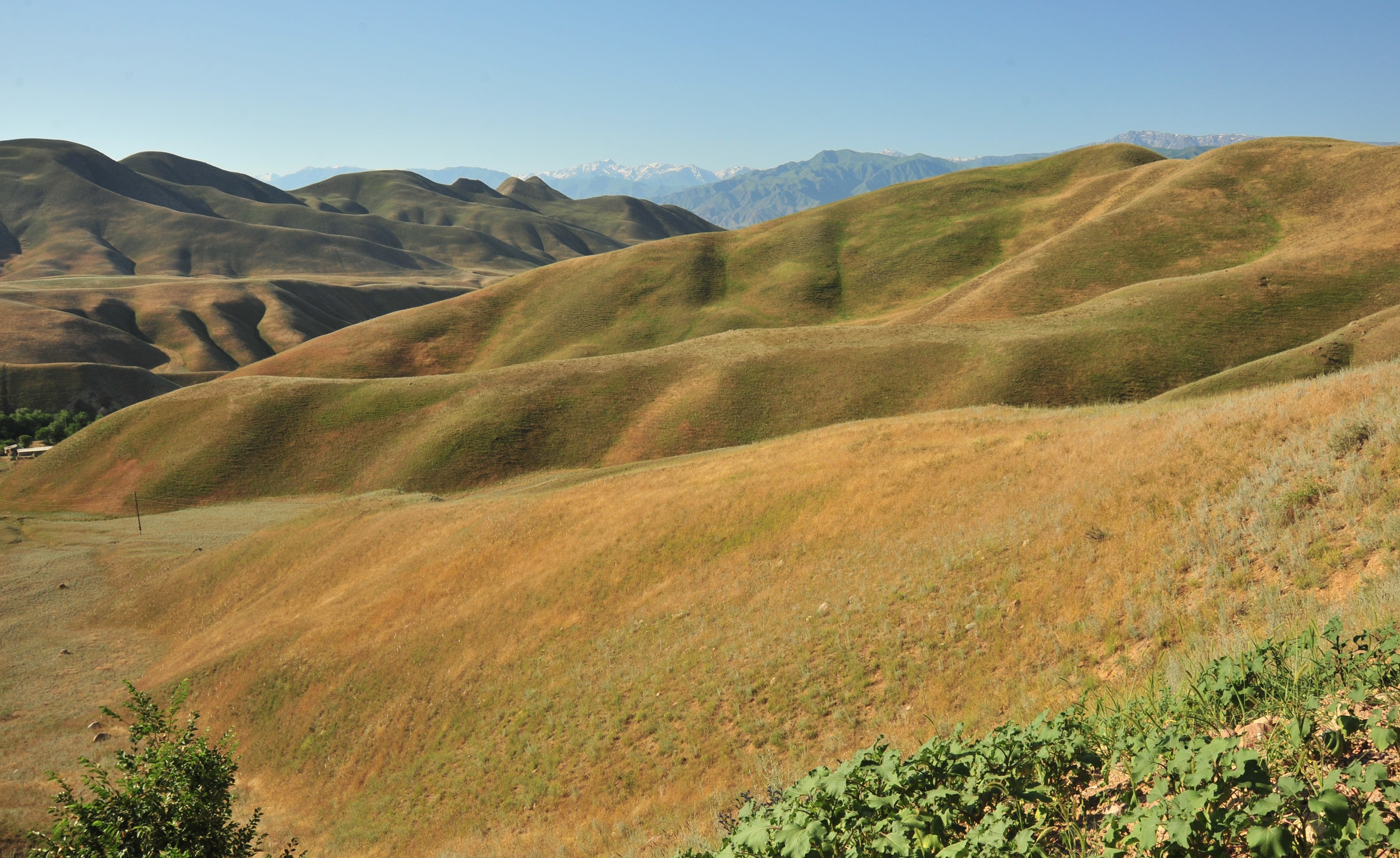 Nous souhaitons rejoindre aussi vite que possible les zones de montagne et quitter la plaine plus ou moins steppique qui s’étend sur tout le nord du pays d’est en ouest. Toutefois, une courte halte entre Keper-Ariq et Sosnoka, le long de la route Kyzyldyykanskaya Trassa, à 1 140 m d’altitude, nous permet de revoir le spectaculaire Astragalus sierversianus Pall., parfaitement fructifié (19*) ainsi qu’Arctium umbrosum (Bunge) Kuntze (204* ; PCPR021941). La graminée dominante sur ces talus steppiques est Taeniatherum crinitum (Schreb.) Nevski (PCPR002698, PCPR002697, PCPR021474 & PCPR021475).