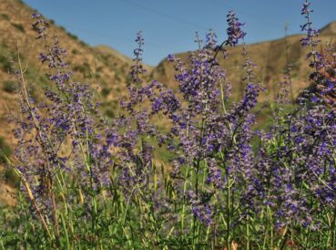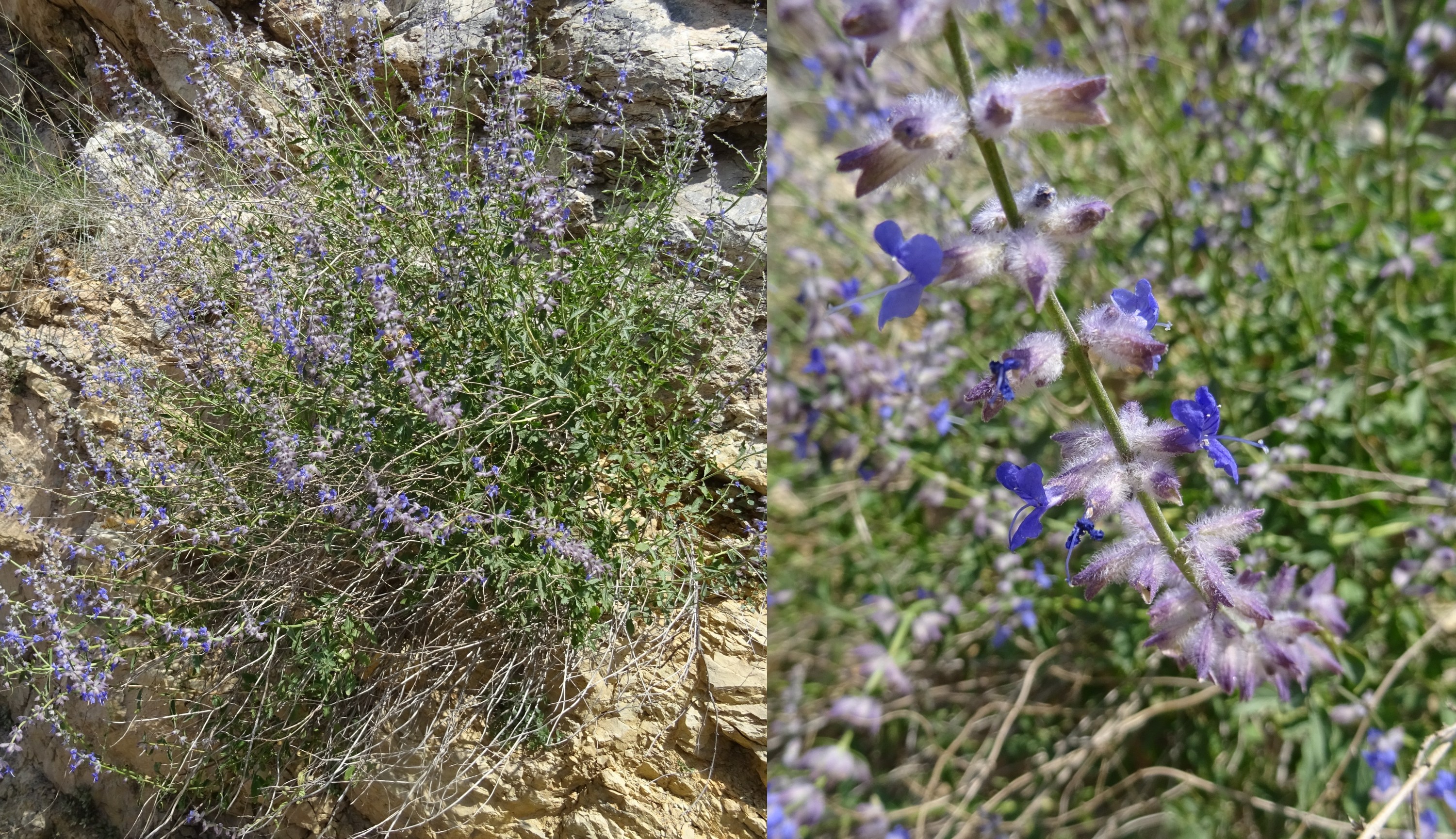 La journée est passablement avancée et nous ne ferons jusqu’à notre étape du soir que quatre petits arrêts, pour autant très intéressants. Le premier, entre Karaköl et Kyzylbeyit (41° 34′ 17.4″ N, 72° 31′ 44.8″ E ; 1 333 m) nous permet d’observer une sauge très proche de Salvia abrotanoides mais à feuilles non découpées. Il s’agit de Salvia karelinii J.B. Walker (= Perovskia angustifolia Kudr.), à feuilles nettement dentées, cunéiformes à la base (planche 36 ; PCPR021793 & PCPR021794). Elle est accompagnée d’Allium caesium (PCPR002690 & PCPR021795) et de Parietaria judaica L. sur les rochers (PCPR021999).
