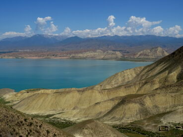 Cette journée de mardi sera très différente de celle de la veille, passée en bonne partie en haute montagne. Nous resterons aujourd’hui essentiellement dans les zones steppiques, en particulier celles entourant le lac de Toktogul. Long de 65 km, il fut initialement rempli par le fleuve Naryn dans les années 1970 à l’époque de l’Union soviétique, grâce à la construction du barrage du même nom, et du barrage de Kurpsaï. Les autorités de Bichkek font régulièrement l’objet de plaintes de la part des pays voisins en aval du Naryn, qui dépendent de ses eaux pour l’irrigation et l’électricité. En effet l’Ouzbékistan et le Kazakhstan estiment qu’il n’y pas assez d’eau l’été et trop d’eau en hiver, provoquant des inondations.