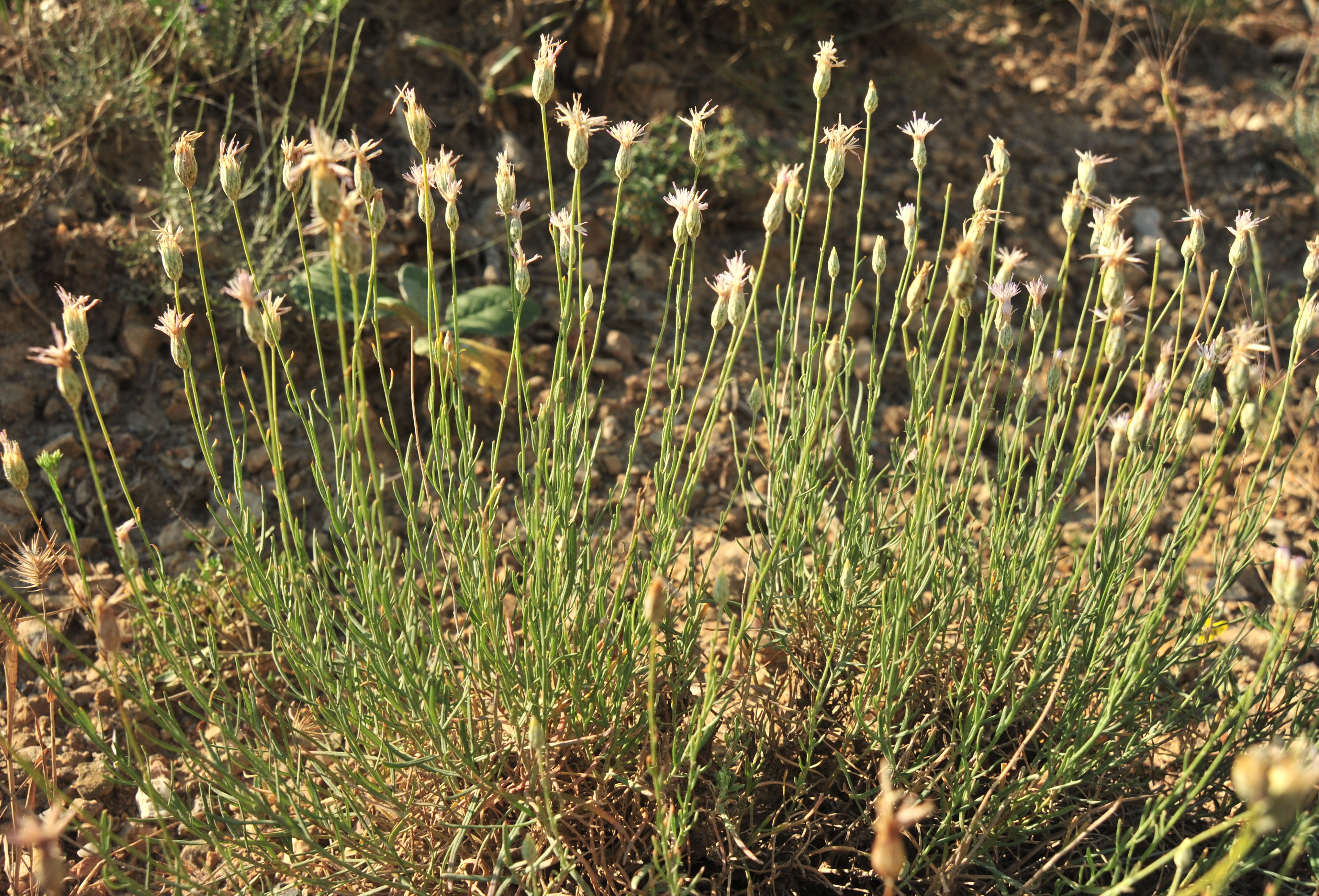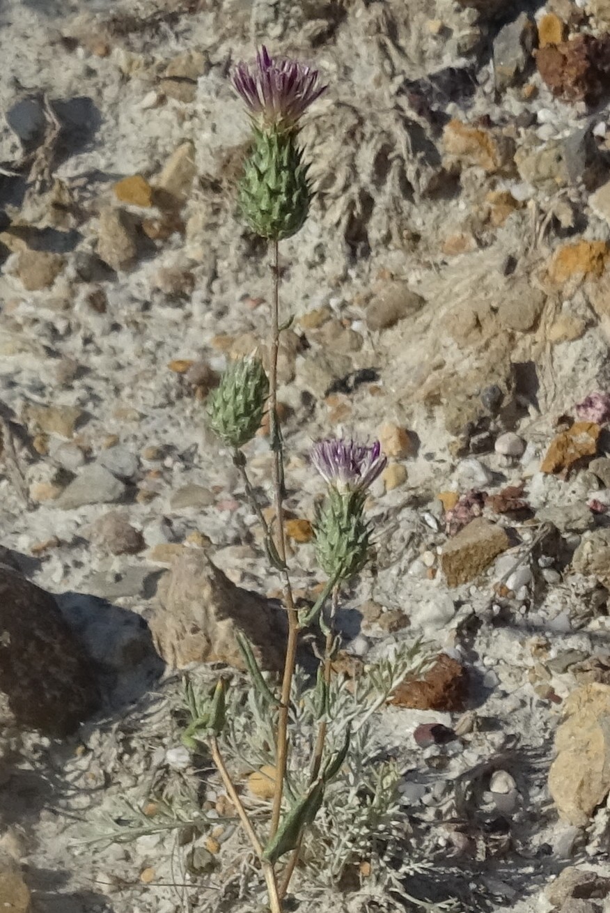 Les composées sont bien présentes avec plusieurs espèces endémiques locales comme Cousinia krauseana Regel & Schmalh. (photo 93 ; PCPR021996), Lepidolopha komarowii C. Winkl. (= Tanacetum k. (C. Winkl.) Muradyan ; photo 94 ; PCPR004003) et Jurinea narynensis Kamelin & Cherneva (photo 95 ; PCPR022235 & PCPR022236), de description récente. Enfin, nous observons des plantes plus communes ou vues les jours précédents, comme Reseda lutea L., Oxytropis rosea (PCPR021860 & PCPR021861), Centaurium pulchellum (Sw.) Hayek ex Hand.-Mazz., Stadlm., Janch. & Faltis subsp. pulchellum, Eremurus czatkalicus, Eremurus tianschanicus, Helianthemum songoricum, Velezia rigida, Koelpinia linearis, Glycyrrhiza glabra (PCPR021985) et à nouveau Astragalus stenocystis.
