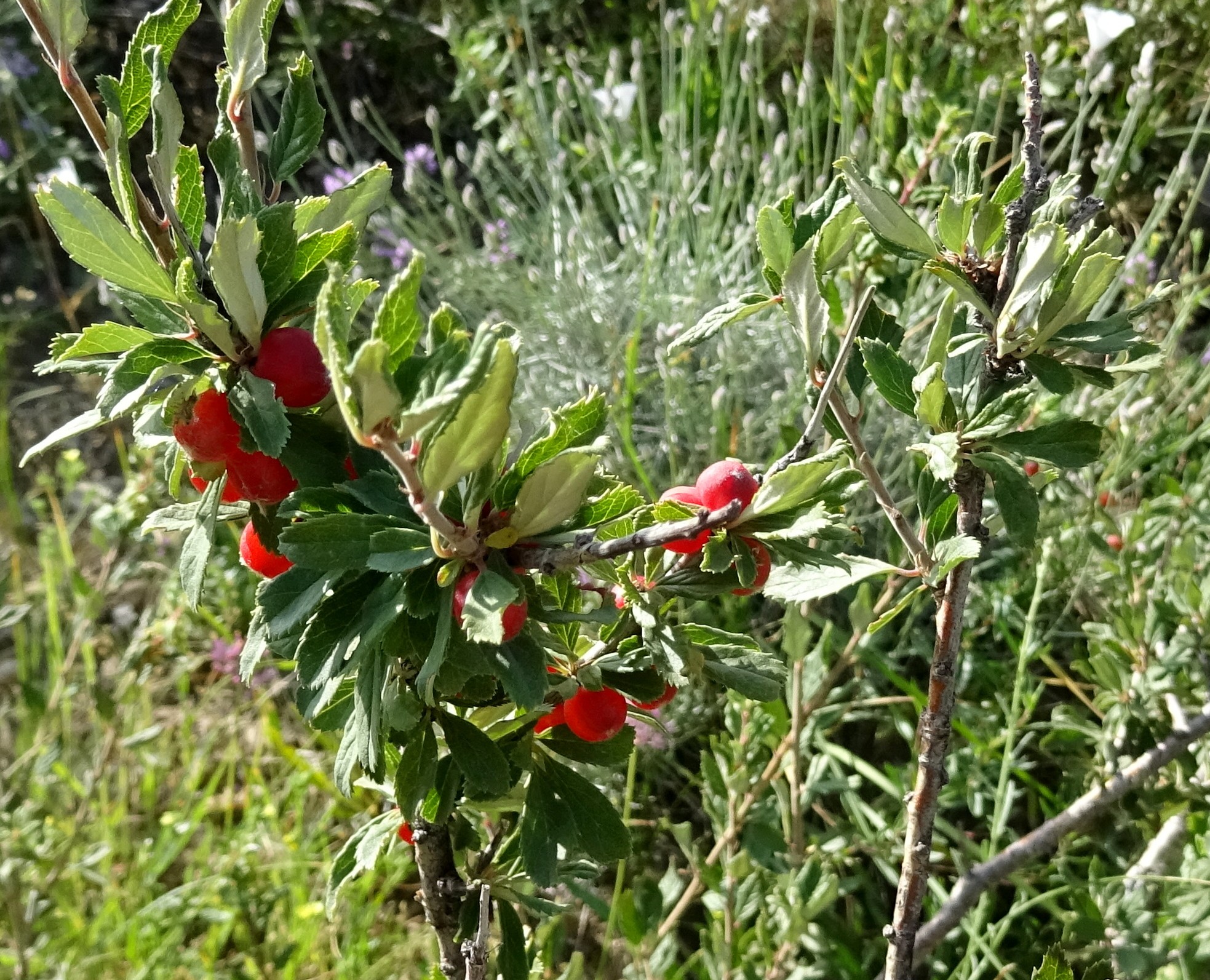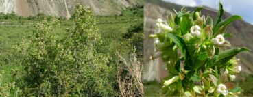 Avec l’astragale pousse Thalictrum foetidum L. (photo 56 ; PCPR021731), ainsi que les arbustes Berberis sphaerocarpa Kar. & Kir. et le très florifère et odorant Zabelia corymbosa (Regel & Schmalh.) Makino (= Abelia c. Regel & Schmalh. ; planche 18 ; PCPR021726 & PCPR021727), qui appartient à la famille des Caprifoliaceae. Il est lui aussi endémique d’Asie centrale.