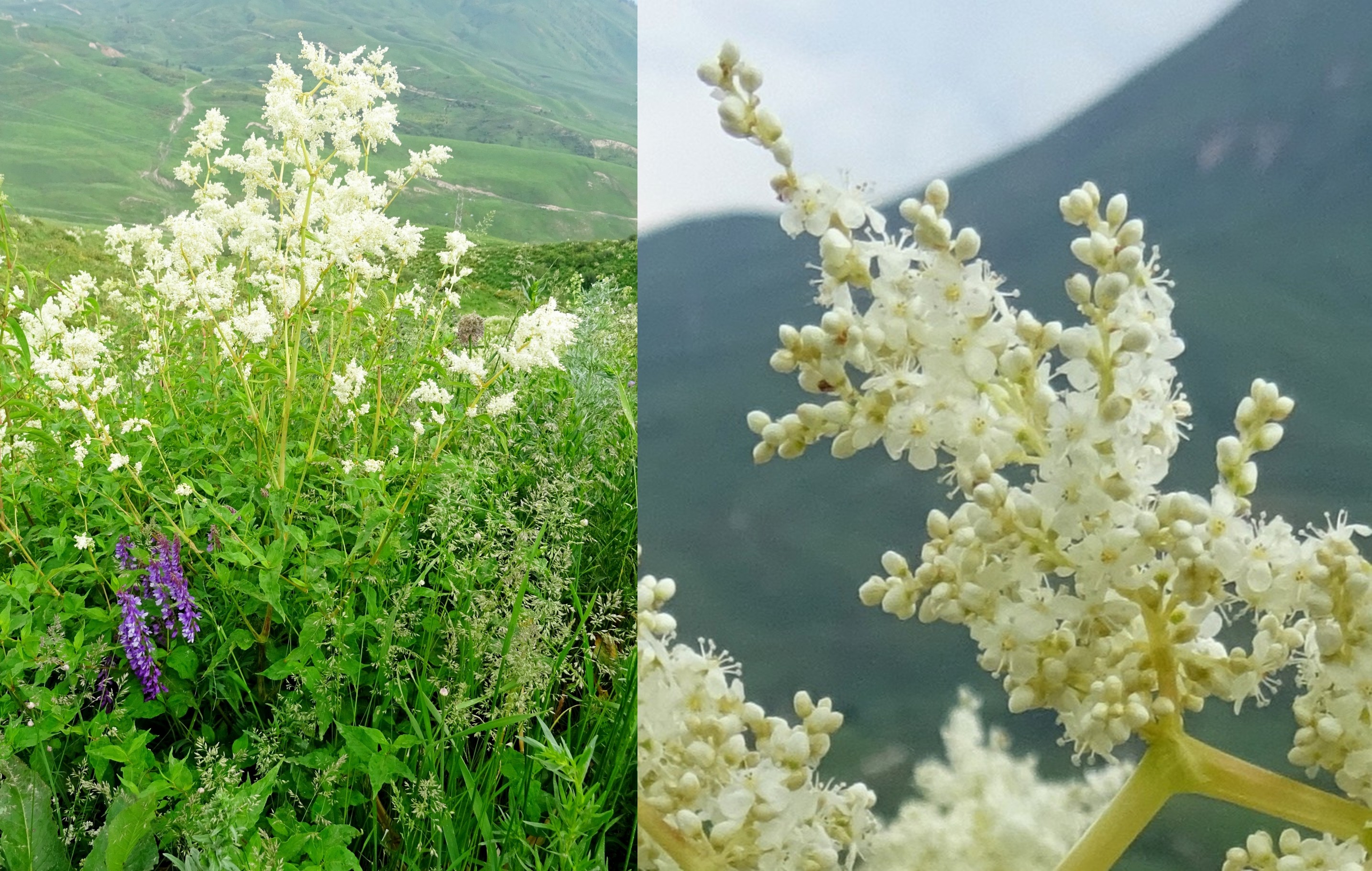 Nous nous engageons donc sur la piste qui longe la vallée en direction d’Almalu, dont la départ se fait à la sortie sud de Torkent. Pendant plusieurs kilomètres, restant sous 1 500 m d’altitude, nous parcourons de nouvelles zones de coteaux steppiques, dont nous avons déjà exploré la flore les jours précédents. Nous ne stopperons qu’en arrivant dans des zones plus fraîches, de vastes prairies de fauche bordées par des mégaphorbiaies. La pluie est au rendez-vous mais la température reste très agréable. En cette saison rien n’a été fauché et les floraisons sont optimales.