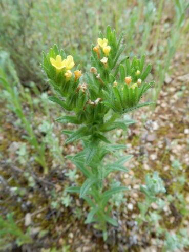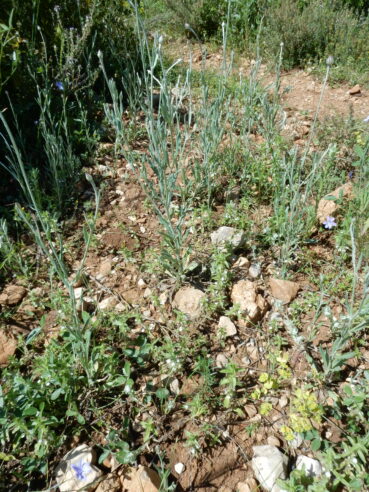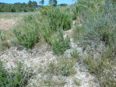 Une de ces pelouses à thérophytes entre en contact avec une pelouse vivace assez différente du Salvio-Lithodoretum fruticosae étudié précédemment (présence notamment de Phlomis lychnitis, Iris lutescens, Phleum phleoides, Convolvulus cantabrica) :