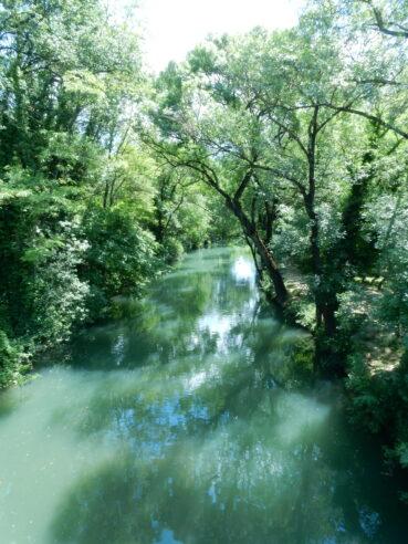 La rivière Mosson prend sa source à Montarnaud, se dirige vers le nord pour baigner Vailhauquès, puis oblique vers l’est, longeant Combaillaux, repart vers le sud en effleurant Grabels, Juvignac, Lavérune et Saint-Jean-de-Védas, puis se dirige vers l’est pour rejoindre le Lez vers l’étang d’Arnel et l’étang du Méjean à Palavas-les-Flots, soit un parcours d’un peu plus de trente-sept kilomètres ; à Grabels, elle reçoit sur sa rive droite un minuscule affluent de deux cents mètres de long, l’Avy. Elle est partiellement bordée d’une ripisylve à Fraxinus angustifolia (photo 18). Parfois, et c’est le cas sur Grabels, elle s’encaisse assez fortement en contrebas de plateaux calcaires ; alors la ripisylve entre en contact avec une forêt plus xérophile où l’on peut observer l’Erico multiflorae-Viburnetum tini déjà présenté.