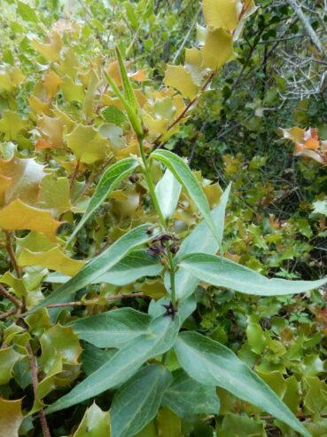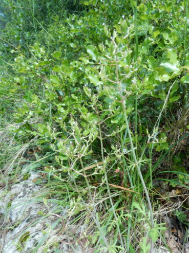L’ourlet de la forêt xérophile (tableau 7 : relevés 10 à 13), bien plus rare que le précédent, se différencie du précédent par plusieurs taxons issus des garrigues locales (Brachypodium retusum, Bupleurum rigidum…), tout en étant particulièrement caractérisé par Vincetoxicum nigrum (photo 22) : Sileno italicae-Vincetoxicetum nigri ass. nov. hoc loco, typus nominis hoc loco : relevé 10 du tableau 7 hoc loco, repris ci-dessous :
